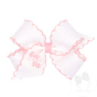 "Big Sis" Embroidered Grosgrain Hair Bow with Light Pink Moonstitch Edge