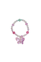 These fancy flutter bracelets come in 3 colour ways (pink, magenta, or purple) and compliment any beautiful butterfly! The multifaceted butterfly pendant is strung along side the iridescent clear beads as well as the fun glitter coated beads for a fun and fluttery look.