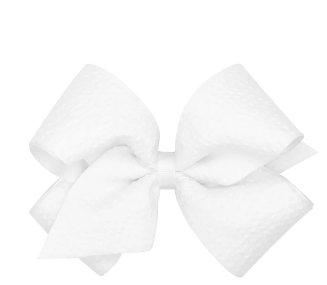 Seersucker Fabric and Grosgrain Overlay Hair Bow - White