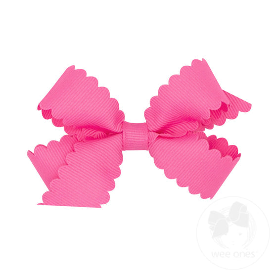 Grosgrain Scalloped Edge Hair Bow - Hot Pink