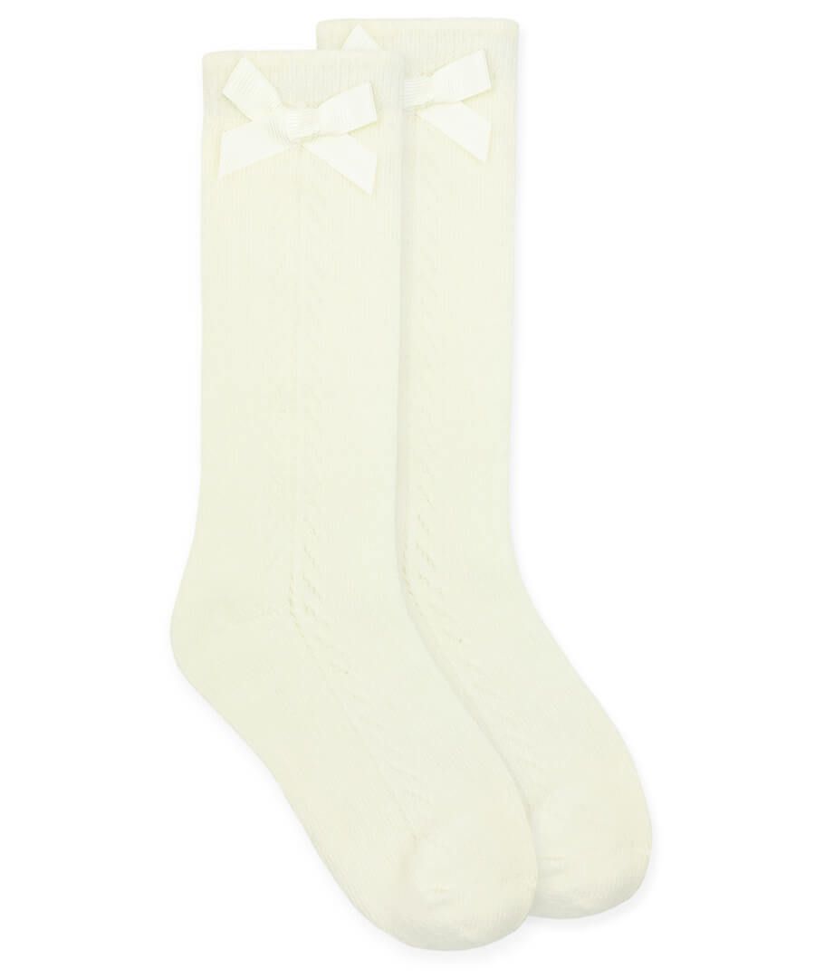 Pointelle Bow Knee Sock - Ivory (1650)