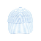 • Blue/white seersucker tuck strap with adjustable slide closure