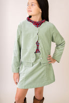 Elegant and timeless, the Jordyn Jacket is tailored in our rich Leyland Green velvet. Designed with a scalloped front detail, this jacket offers a polished finish that feels both classic and unique. Perfect for layering over holiday dresses or pairing with seasonal separates, it's a versatile piece that adds a touch of sophistication to any outfit.