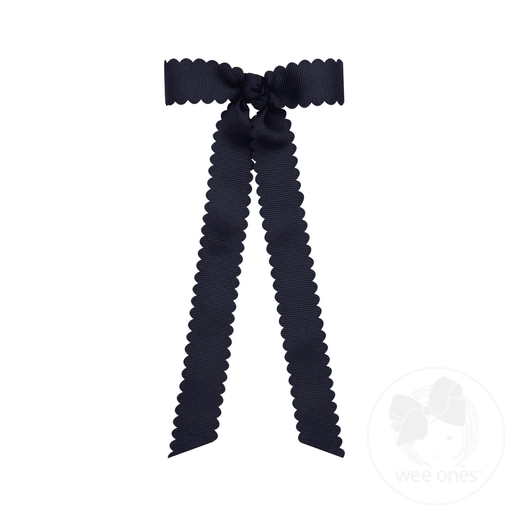 Mini Scalloped Edge Grosgrain Bow with Streamer Tails - Navy