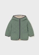 Long sleeved Puffer jacket for boys. Hooded collar. Front, central zip fastening. Padded design/Quilted design. The item has a unisex design which offers great versatility through its neutral color tones and shape. This is a reversible item.