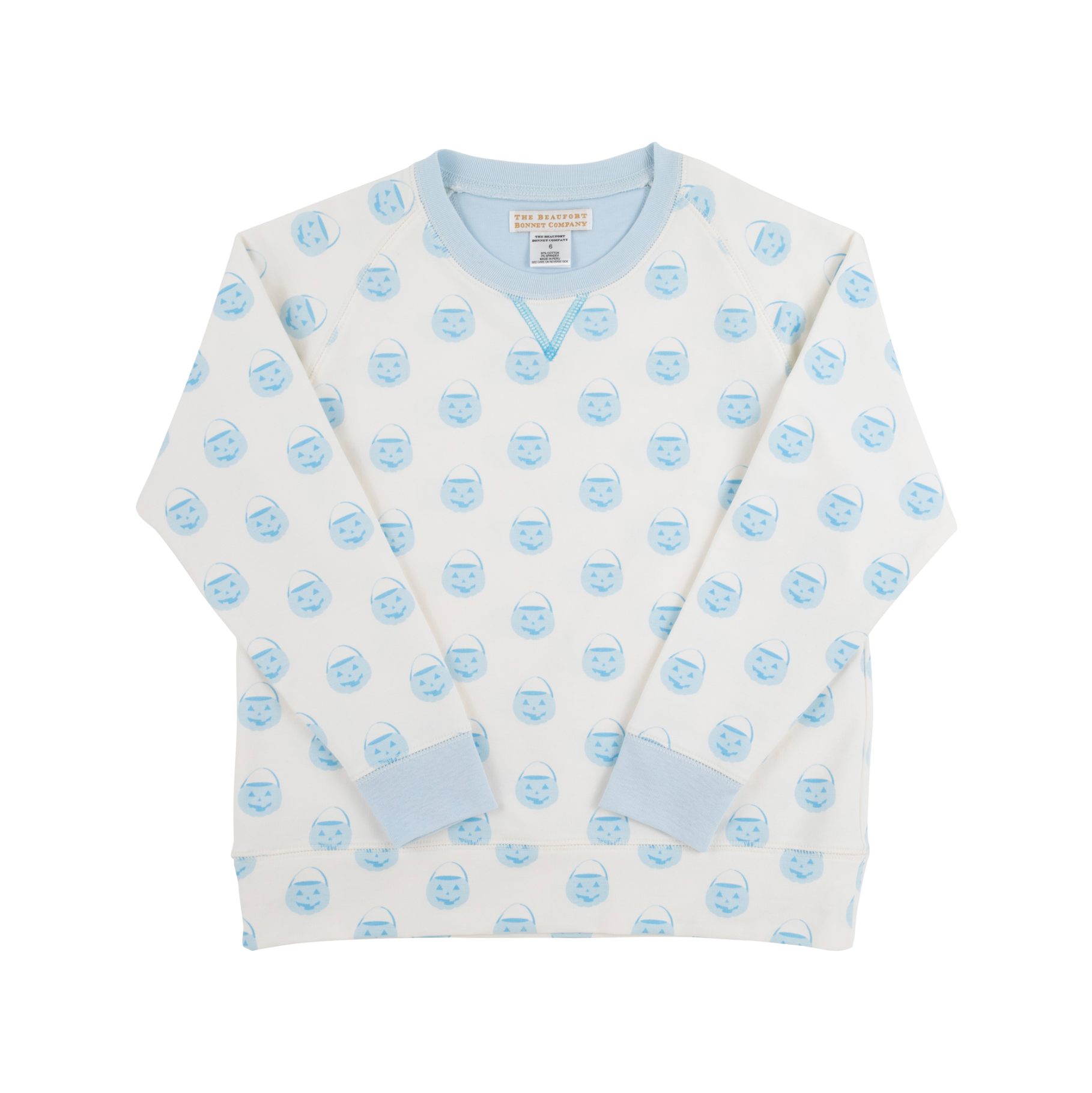 Cassidy Comfy Crewneck - Vintage-Prep Pumpkin Pails (Buckhead Blue) with Buckhead Blue