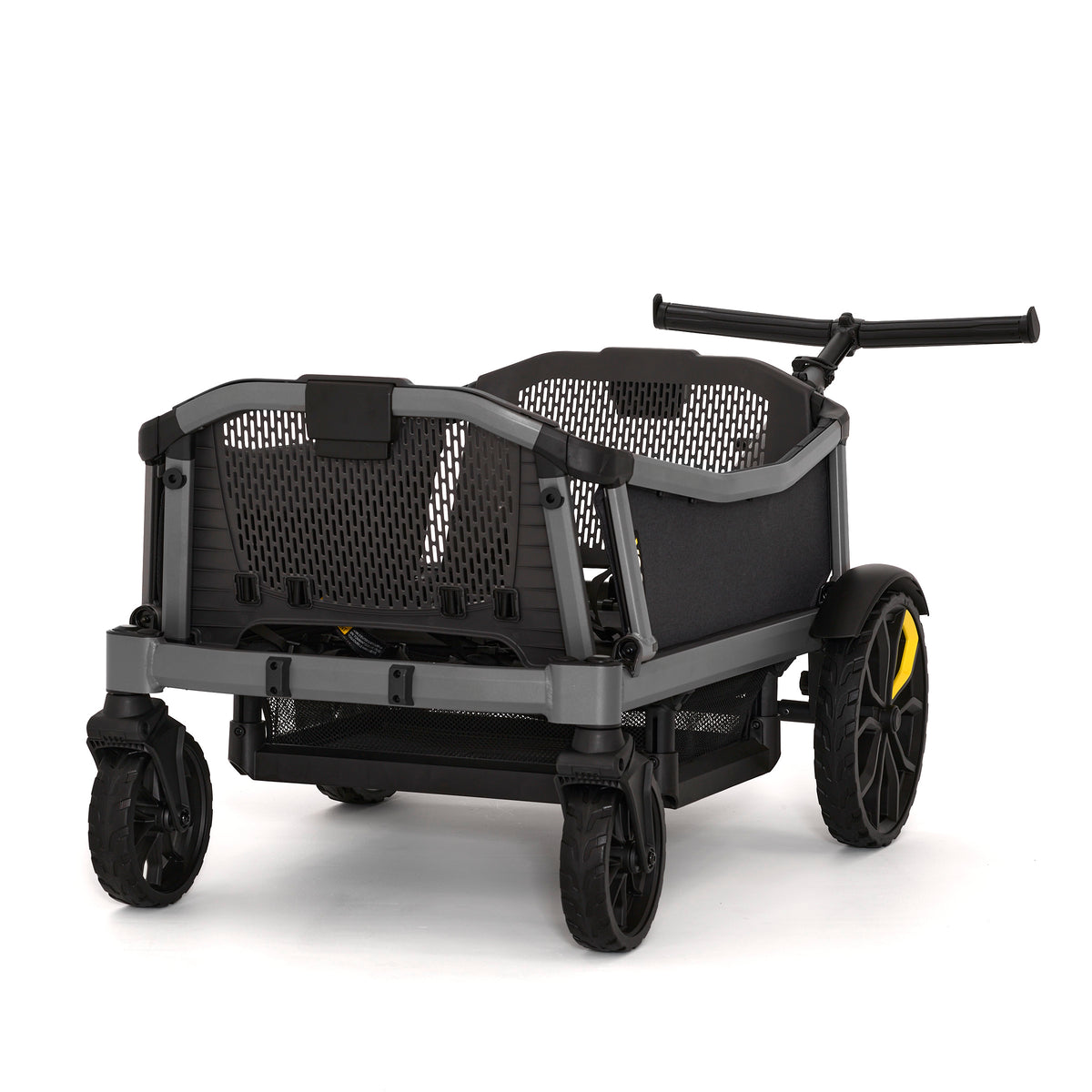 Cruiser City XL gives your family the fun and all-terrain versatility of a Cruiser but offers push steering and ample kickspace of a traditional stroller. Cruiser City XL is perfect for families that love to push on sidewalks, paths and through local attractions with seating for 4. Cruiser City XL features swivel wheels furthest from the handle, which enable it to be steered like a traditional stroller when pushing on smooth terrain. But don't worry, the handlebar can also drop into wagon mode for pulling over uneven terrain.