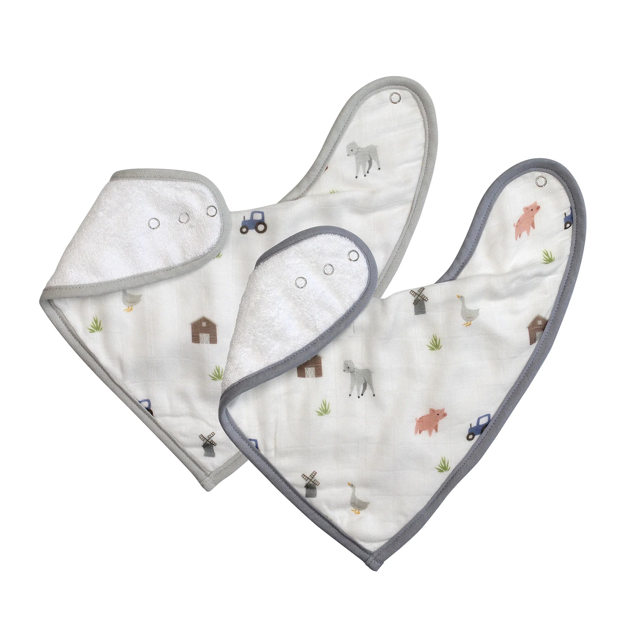 Our versatile, pillowy soft baby bibs are perfect companions for eating, teething, or even drooling. The two-sided blend of viscose from bamboo with cotton muslin on front and absorbent, plush terry backing is tough enough to hold up to any spills, sustainable enough to set your mind at ease, and so comfortable your child will forget they’re wearing it!
