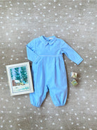 Our Long Sleeve Bradford Romper featuring Beale Street Blue with Worth Avenue White is too good to be true! We love how soft this romper feels, how easy it is to play in, and how detailed the embroidery is. Every inch is perfection!