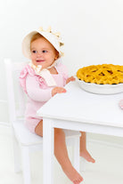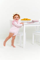 How darling is this Long Sleeve Ruehling Ruffle Bubble? From the Palm Beach Pink to the ruffle sleeve detail, we are all swooning over this sweet piece... we have a feeling you will be too!