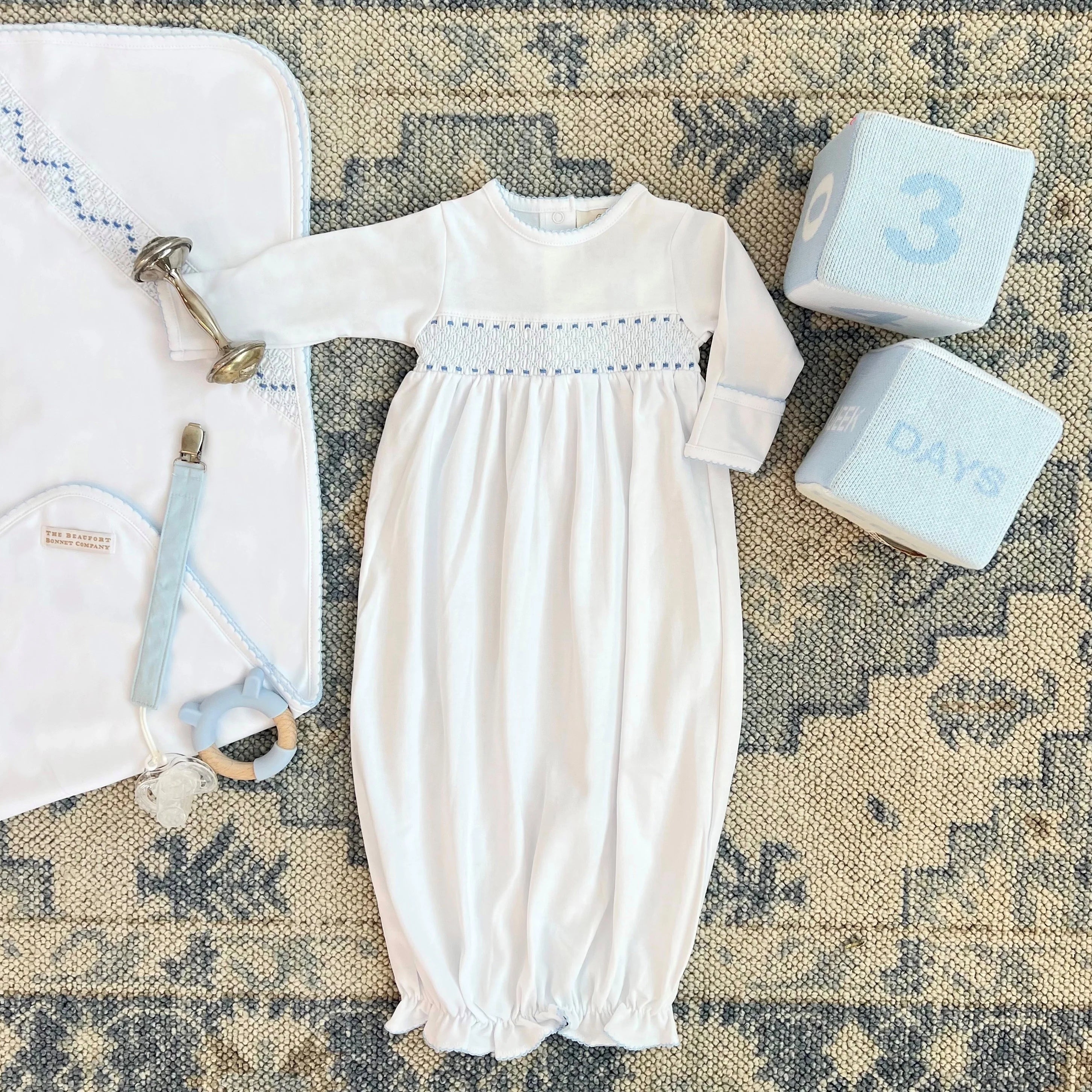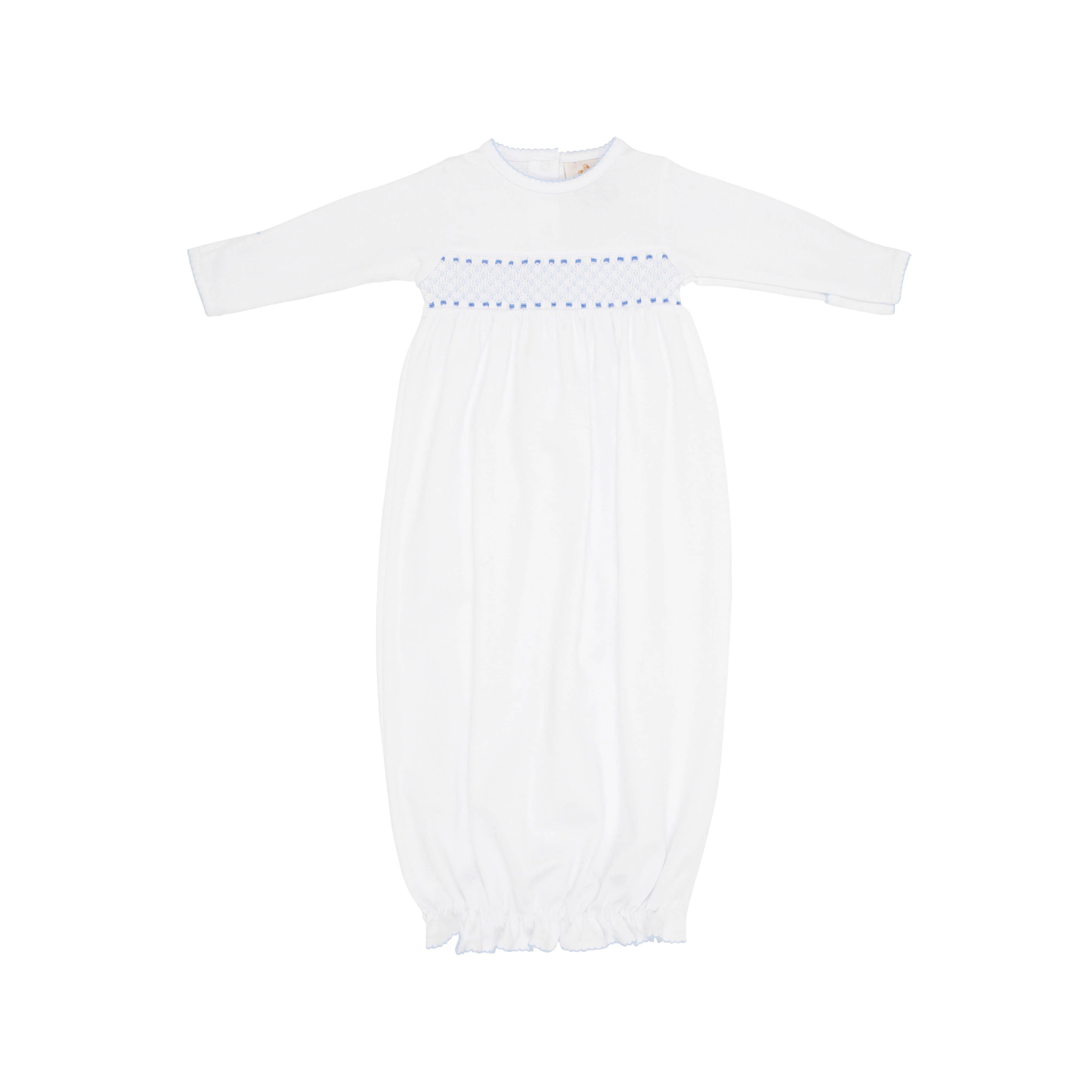 Sweetly Smocked Greeting Gown - Worth Avenue White with Buckhead Blue
