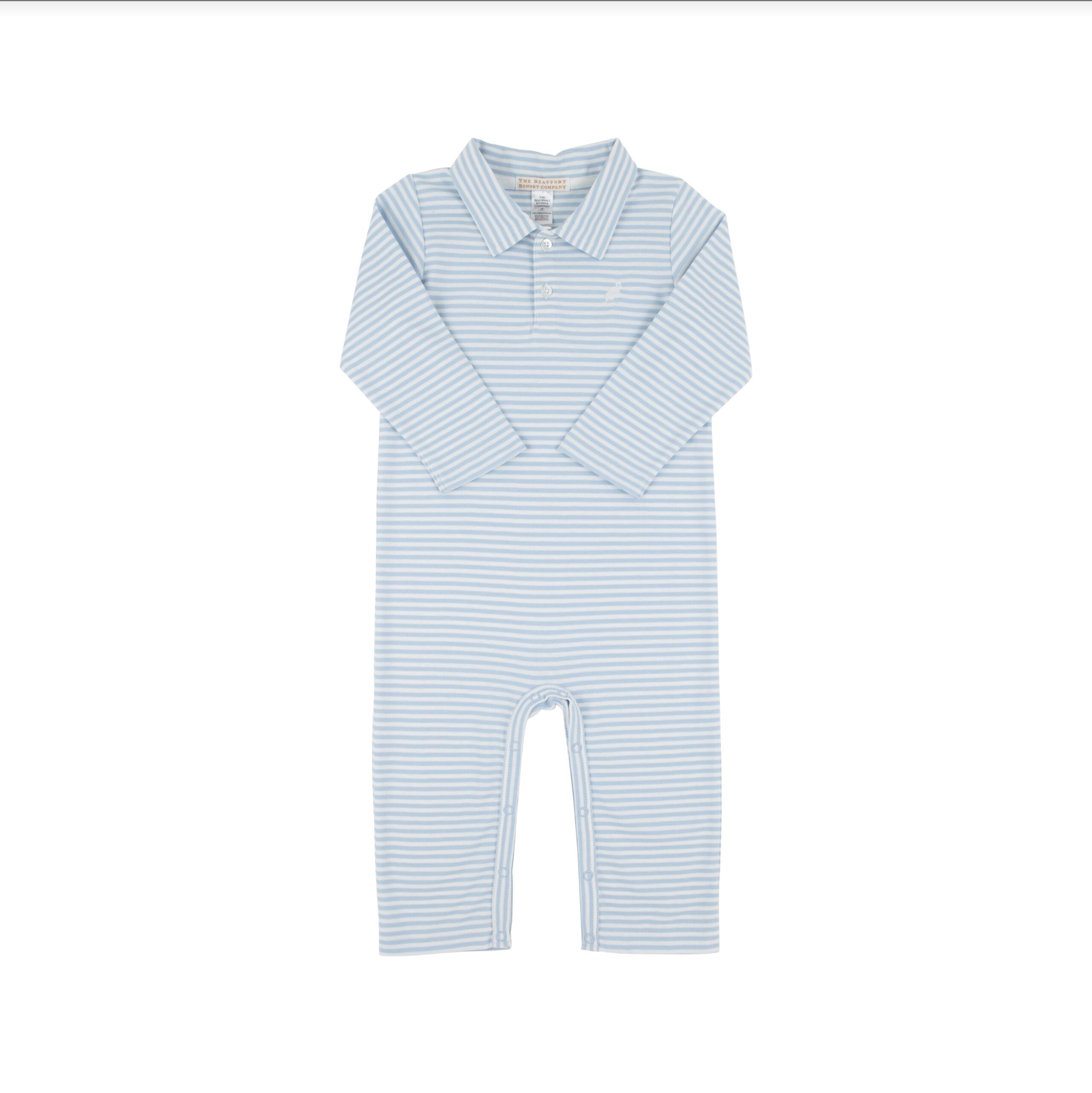 Long Sleeve Sir Proper's Romper - Beale Street Blue Stripe with Worth Avenue White