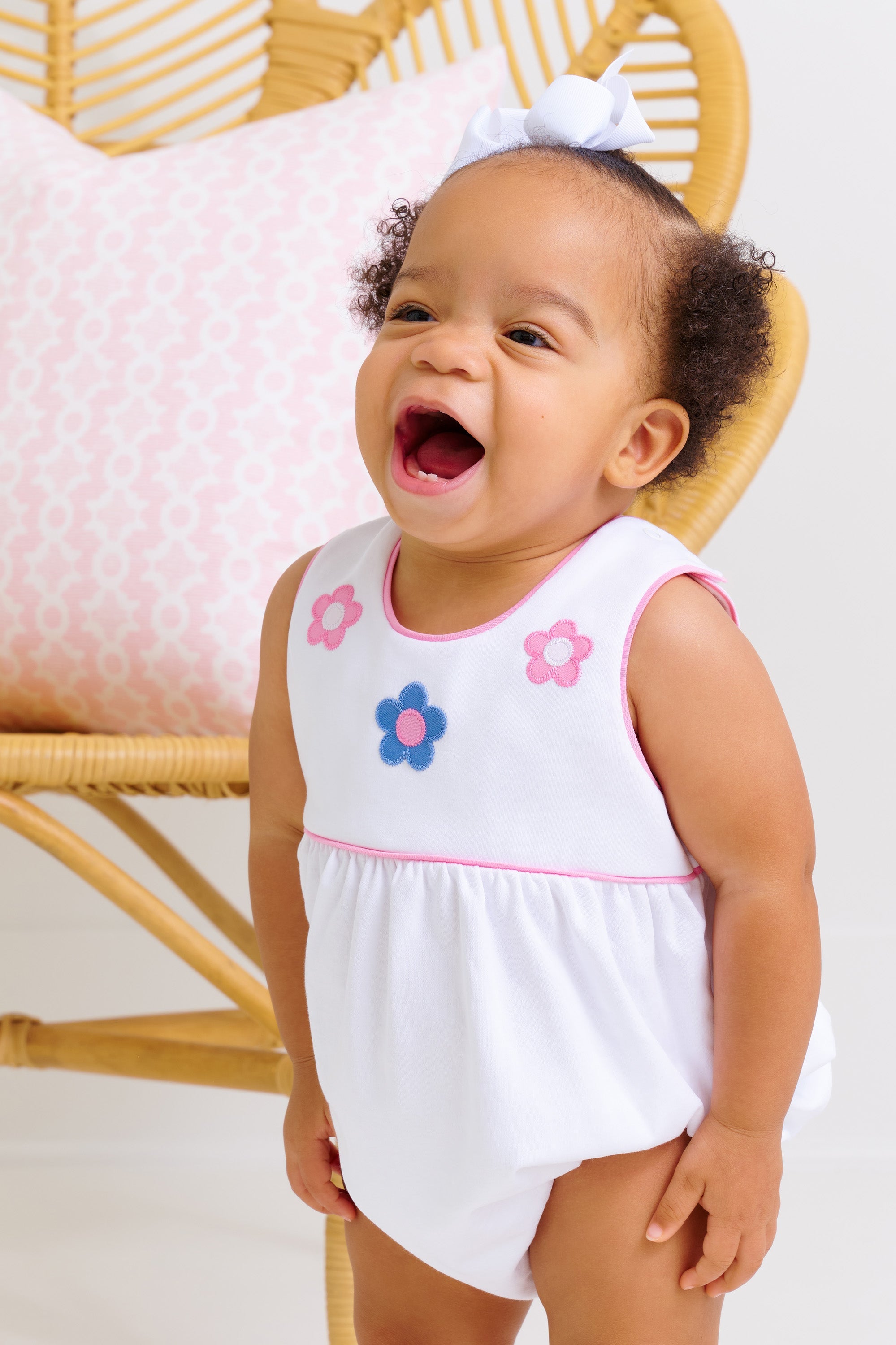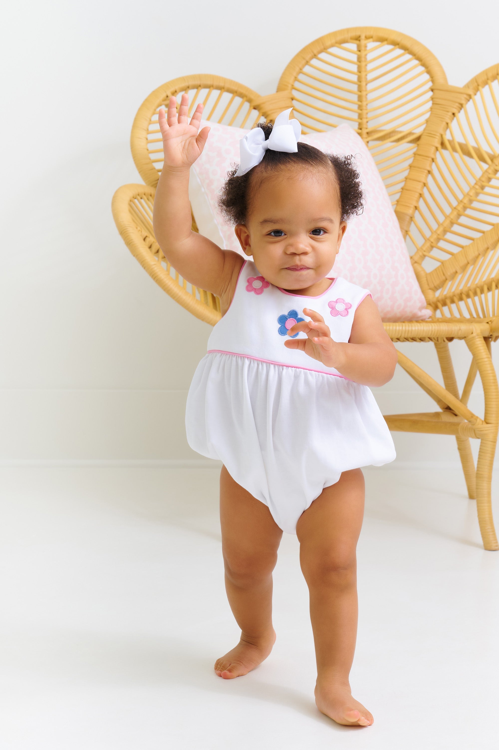 Brooksy Bubble- Worth Avenue White with Hamptons Hot Pink & Flower Embroidery