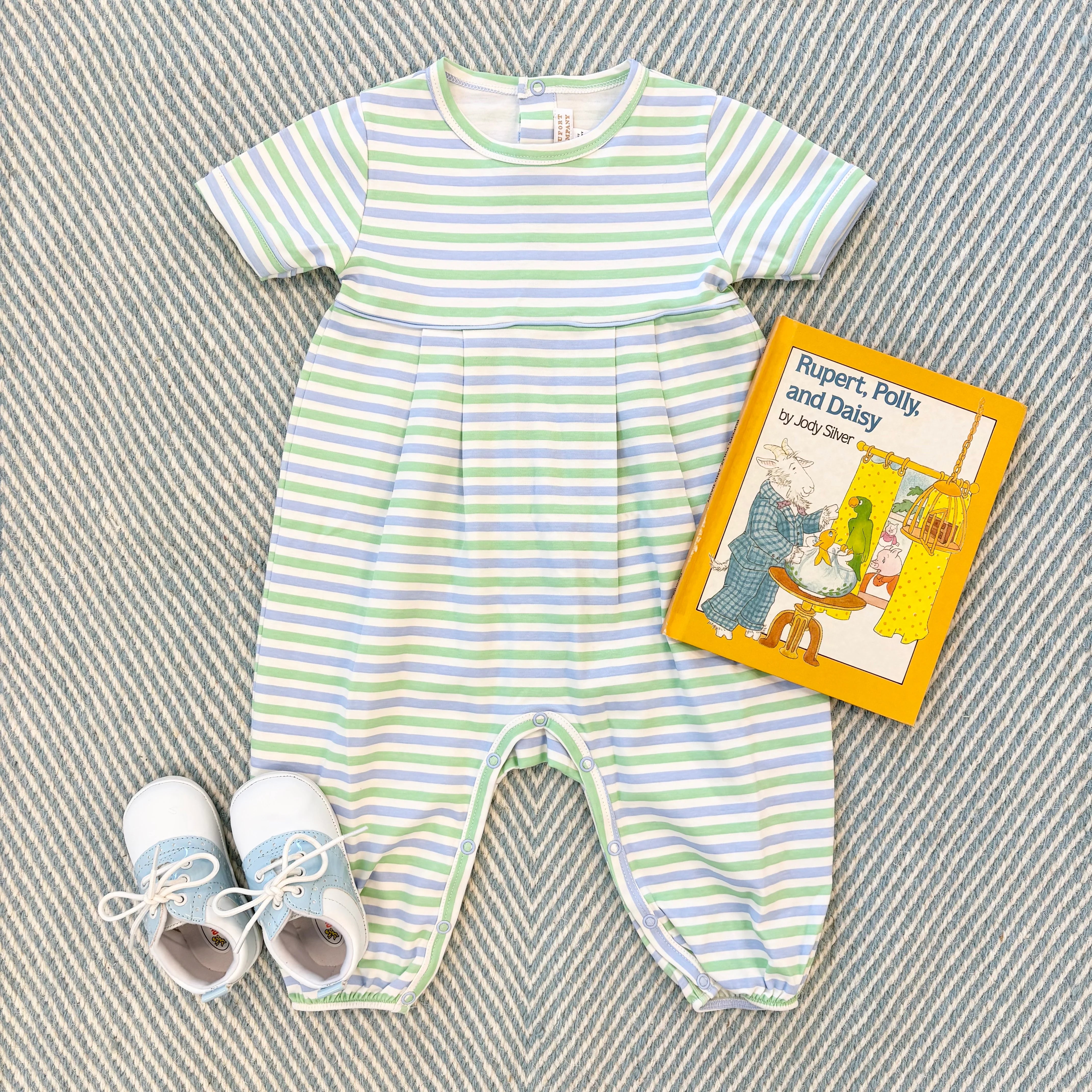 Short Sleeve Bradford Romper - Kennedy Cruise Stripe with Beale Street Blue