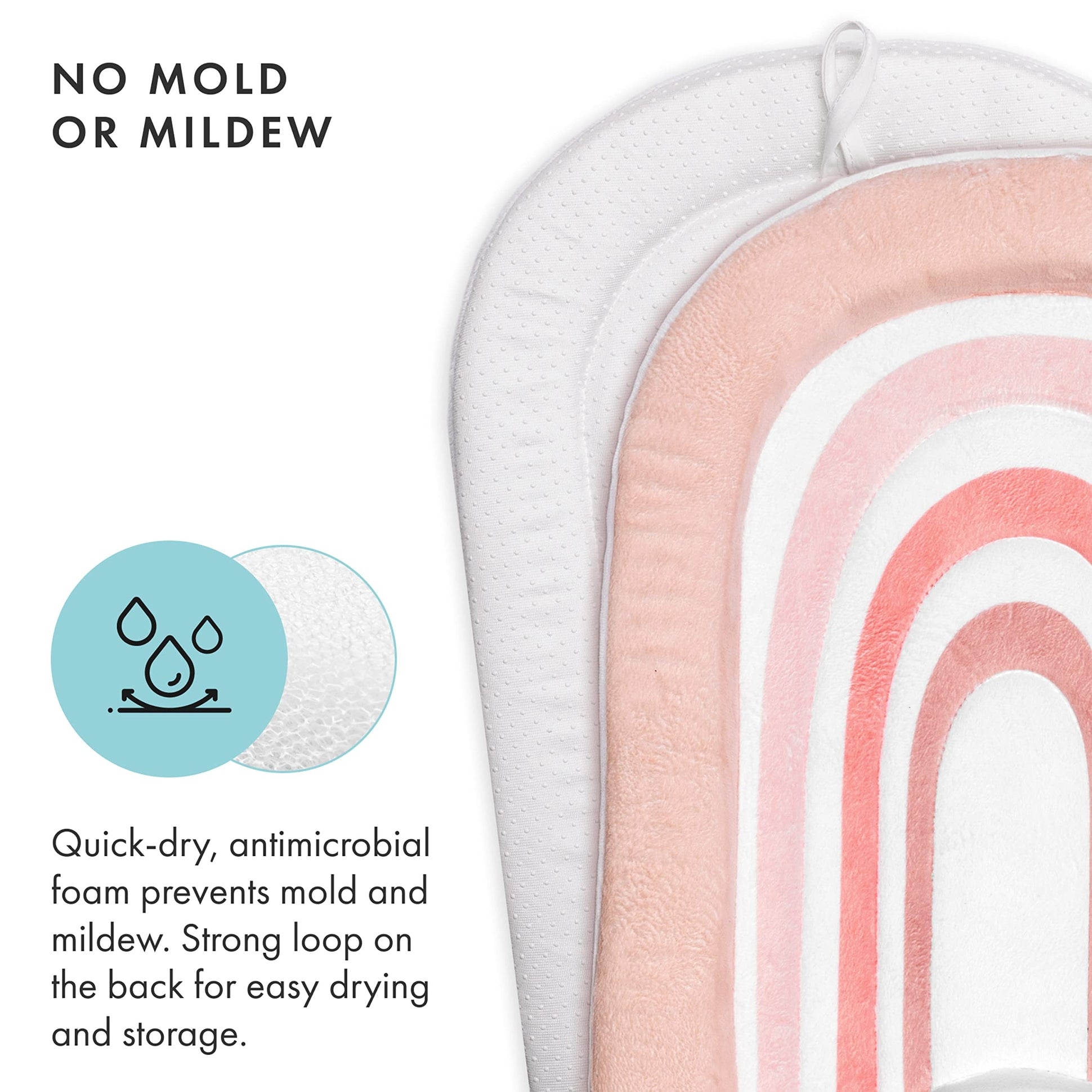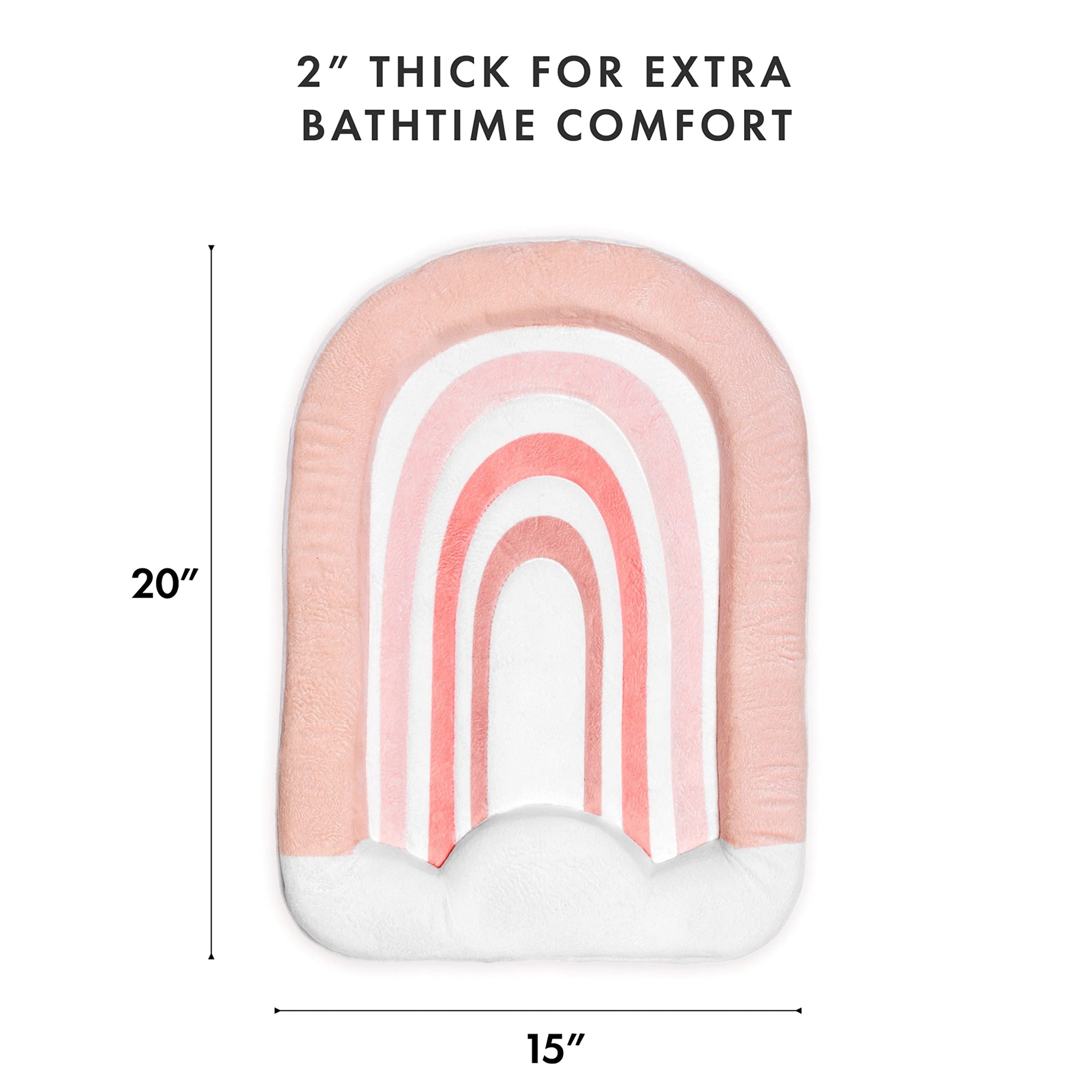 Our Rainbow Bath Pad is the perfect bath mat for baby, providing a safe, comfortable, and fun bathing experience for everyone. This 2” thick baby bath cushion is made from the softest plush materials we could find to keep baby warm and cozy while bathing in a cold, hard sink or tub. The slip-resistant base keeps the baby bath support in place for a safe bathing experience. When your cozy baby sink bath is over, caring for your Rainbow Bath Pad is a cinch. Our Easy-Care, ultrasoft fabric is washer & dryer safe on delicate. The lightweight, flexible design allows for easy storage, making it a great alternative to bulky baby tubs for newborns. The Rainbow Bath Pad baby bather is recommended for newborns and babies up to eighteen months. It’s the perfect addition to your newborn bath essentials and makes a great baby shower or new arrival gift.