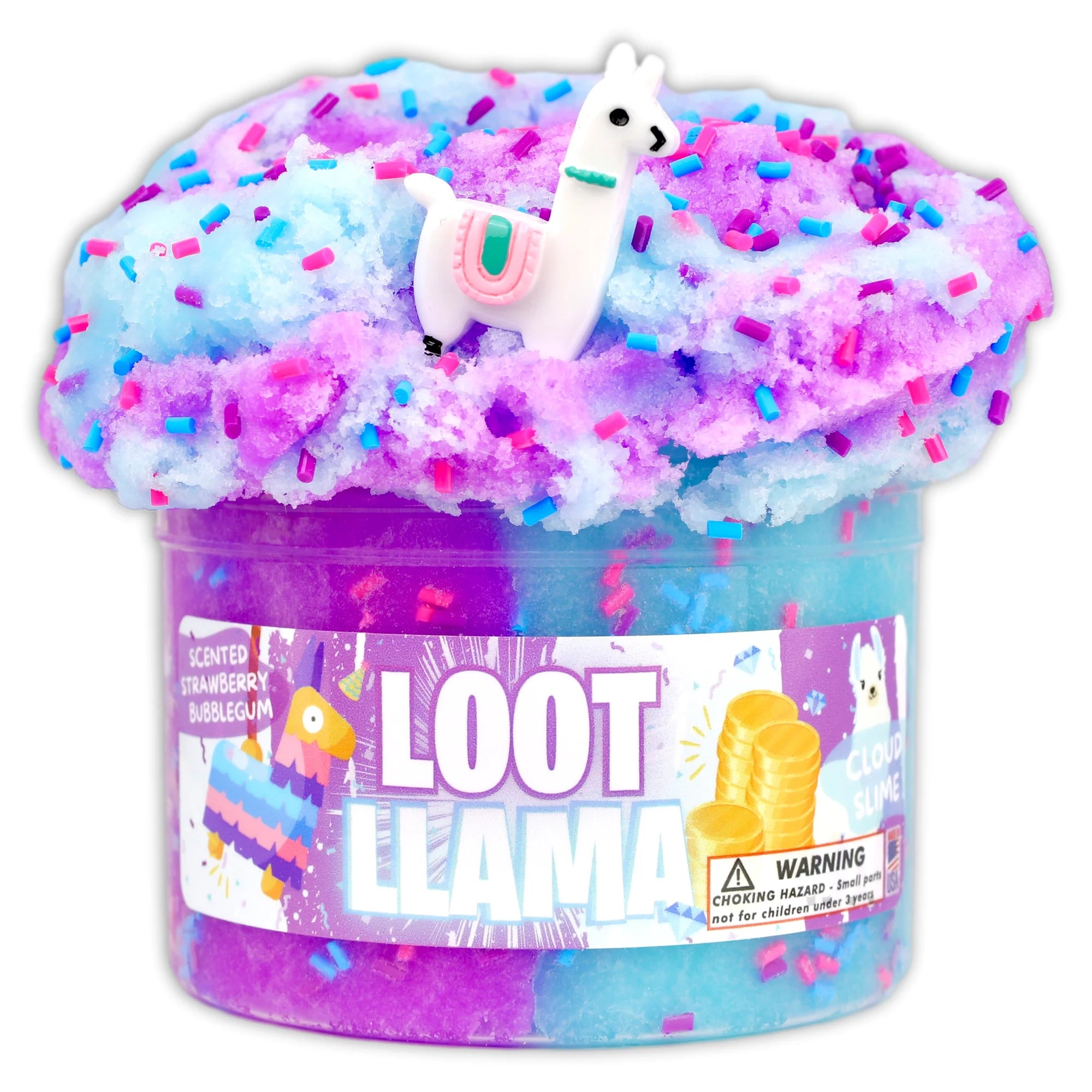 duo colored dreamy soft & drizzley cloud slime inspired off the loot llama from my favorite game! pastel teal & purple colors that blends into a beautiful lavender purple color — scented sweet strawberry bubblegum!