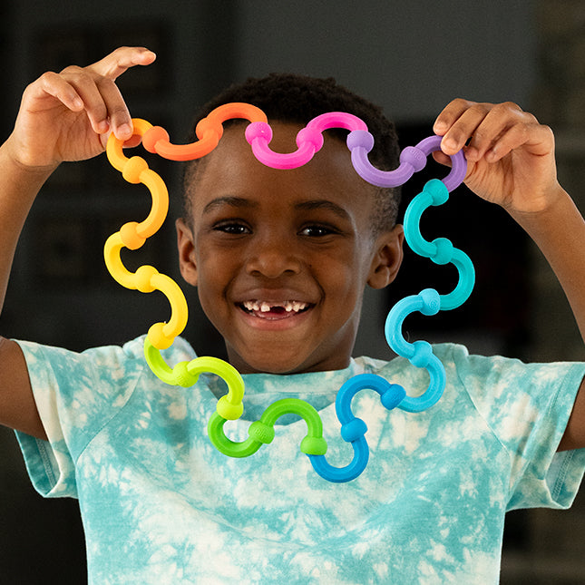 - Links create a satisfying "POP" sound when pulled apart