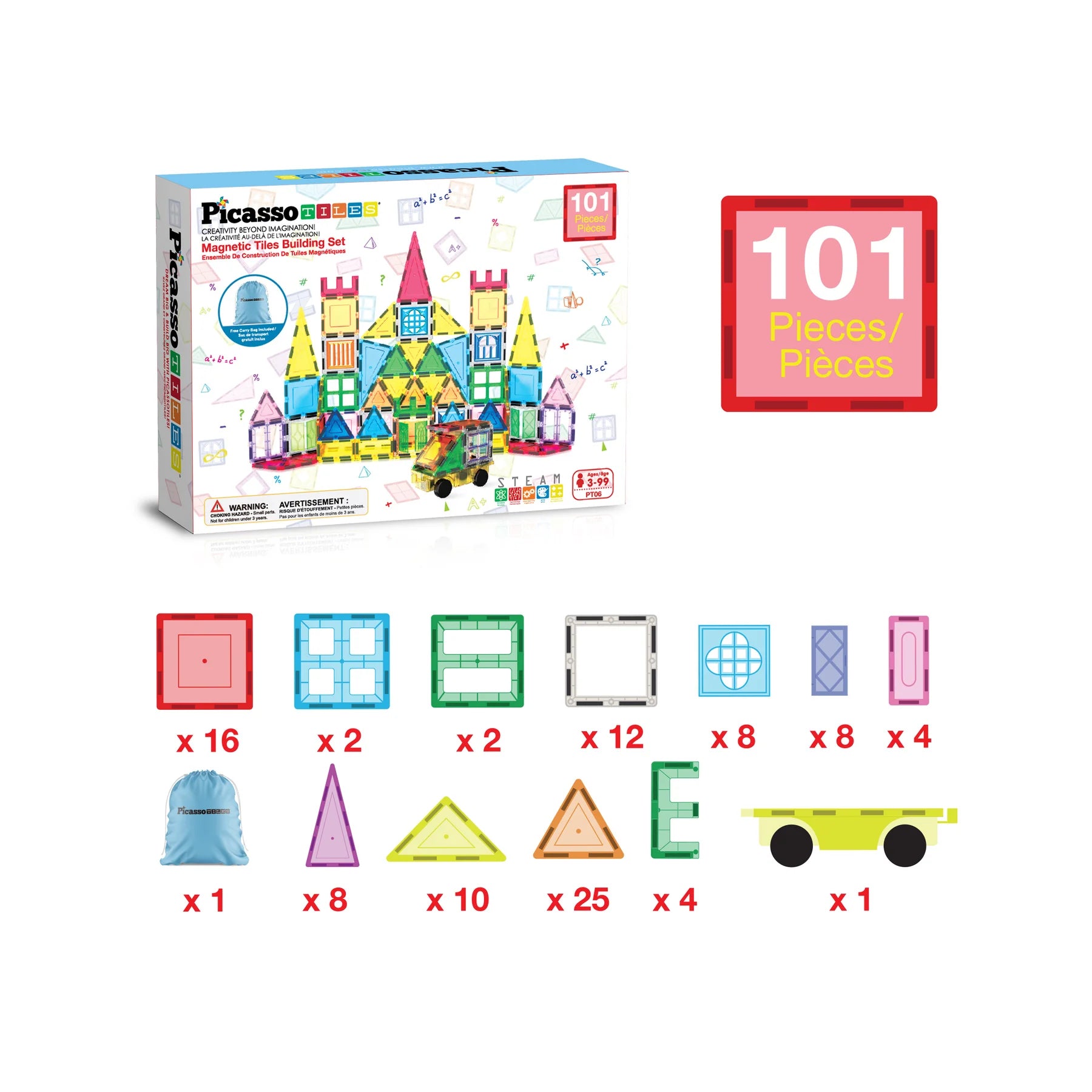 101pc Magnetic Tiles w/Doors, Windows & Carry Bag