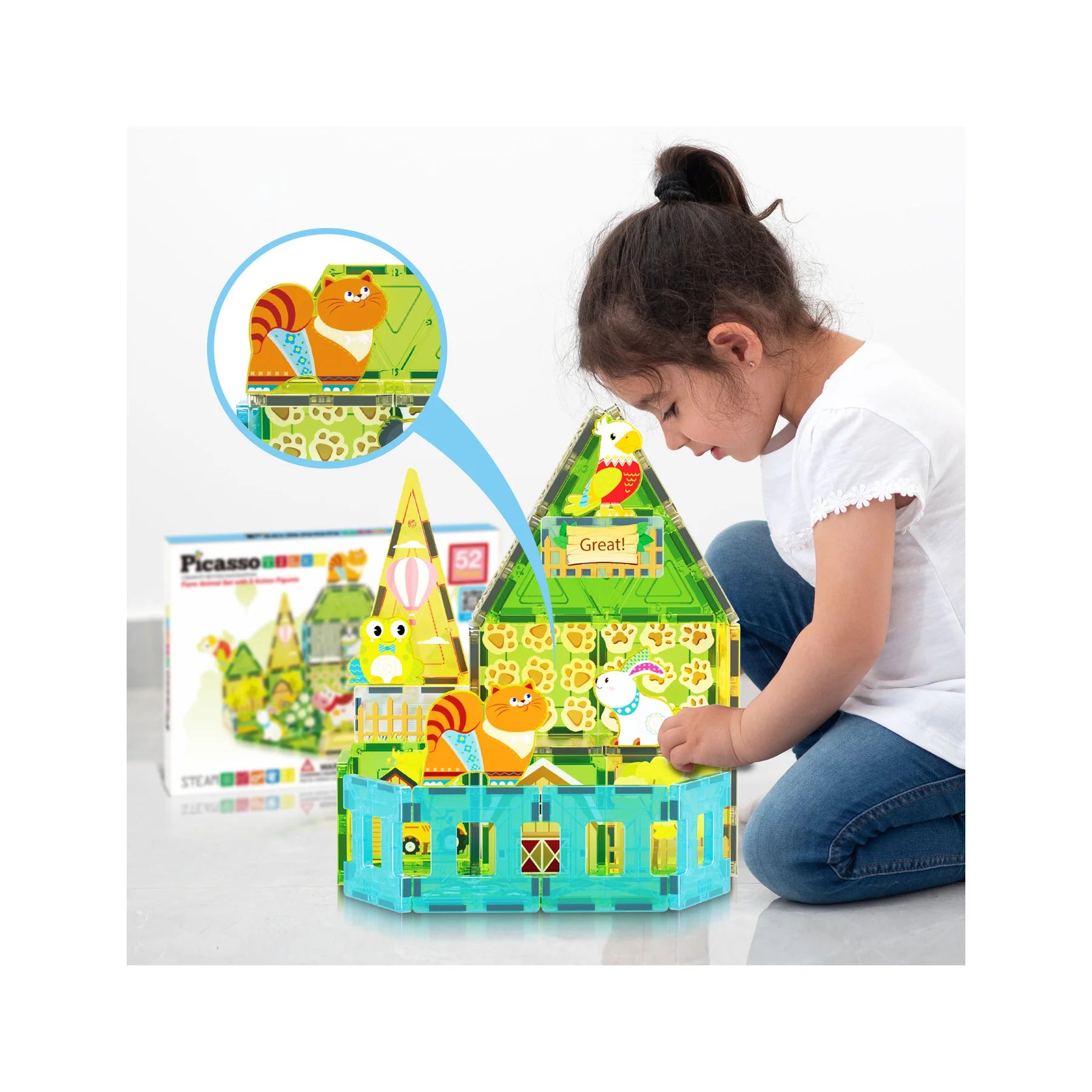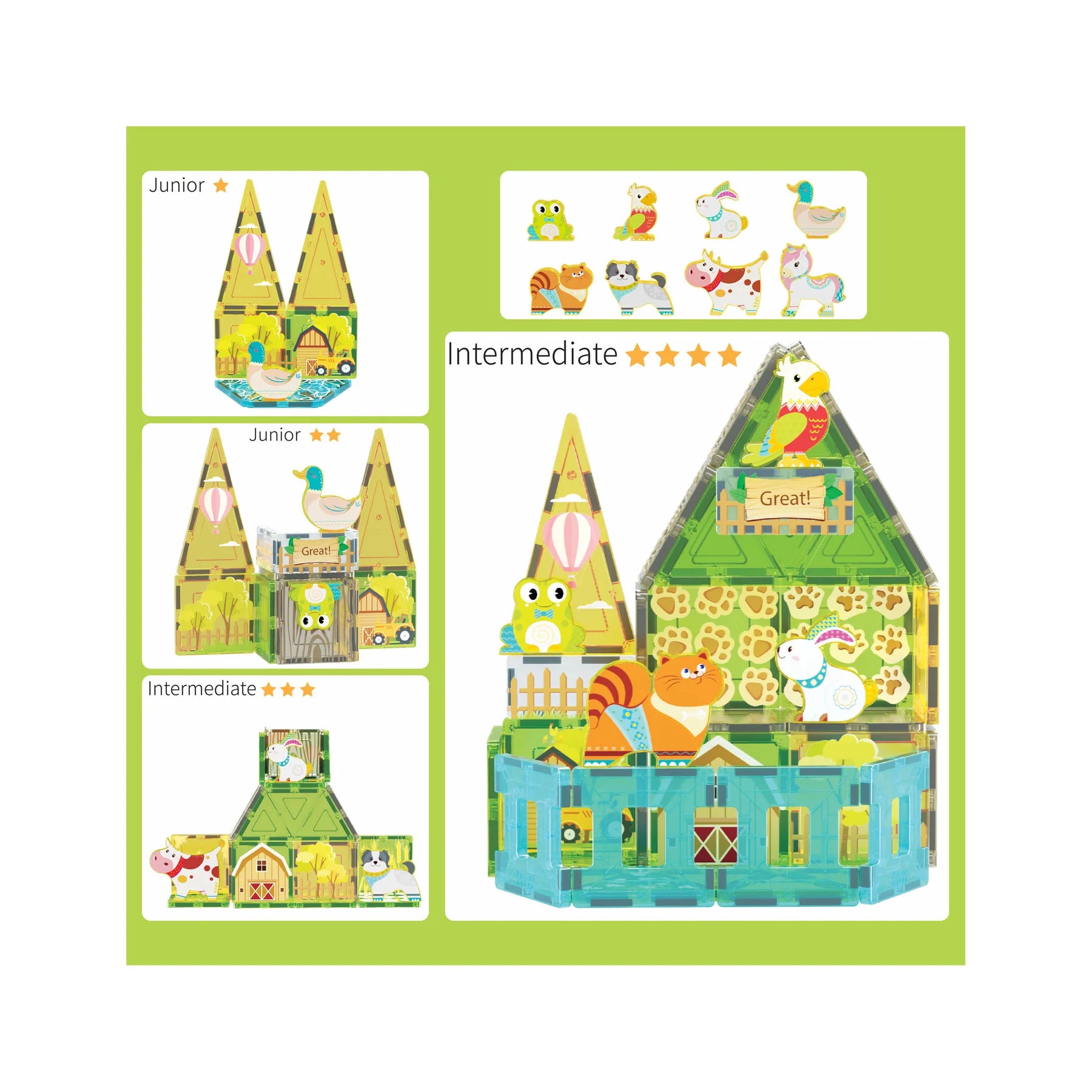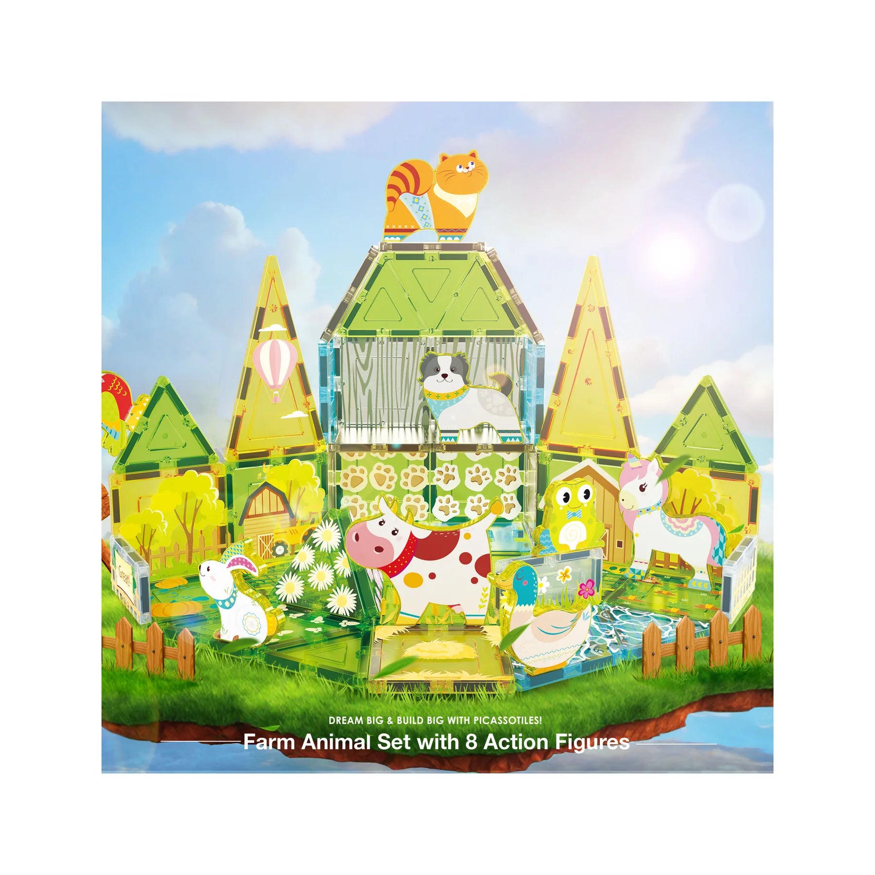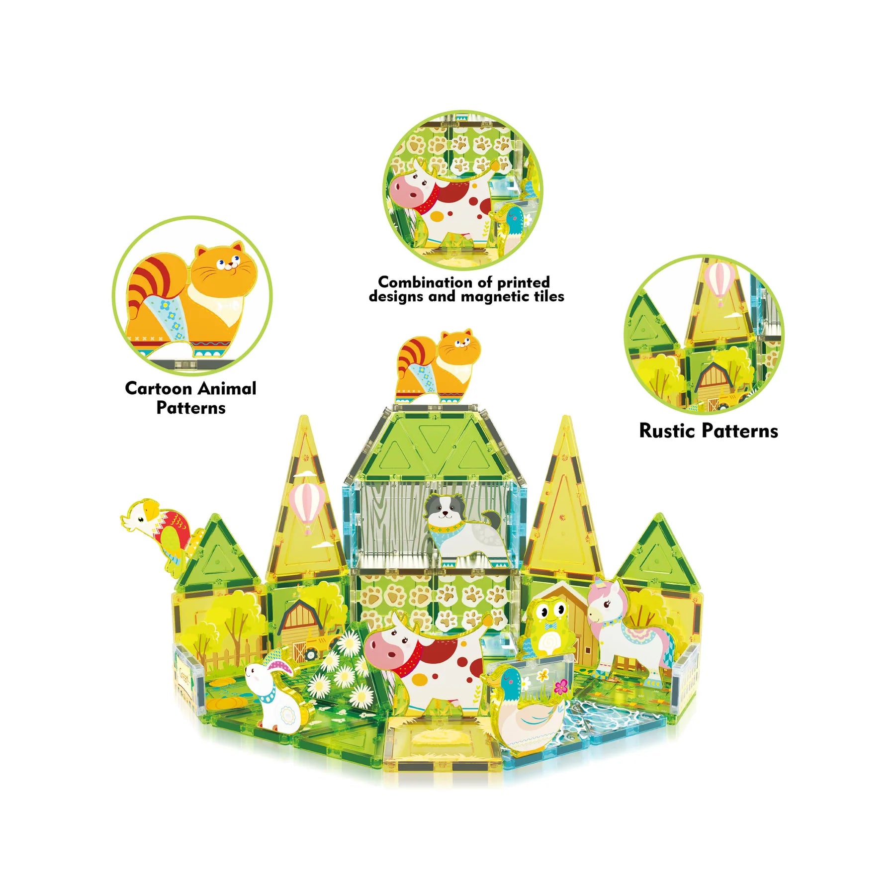Farm Animal Magnet Tile Building Blocks with Magnetic Characters