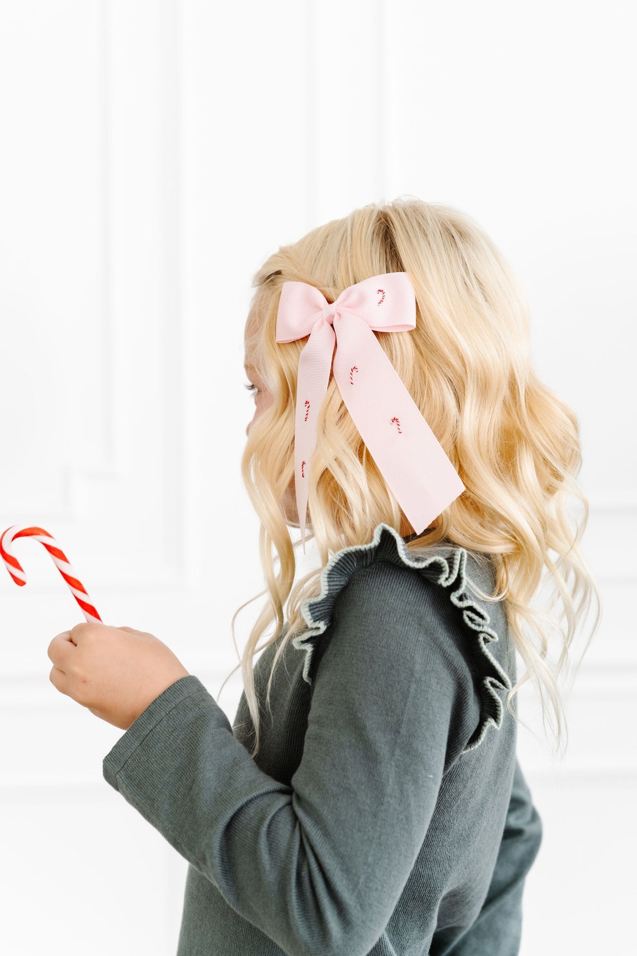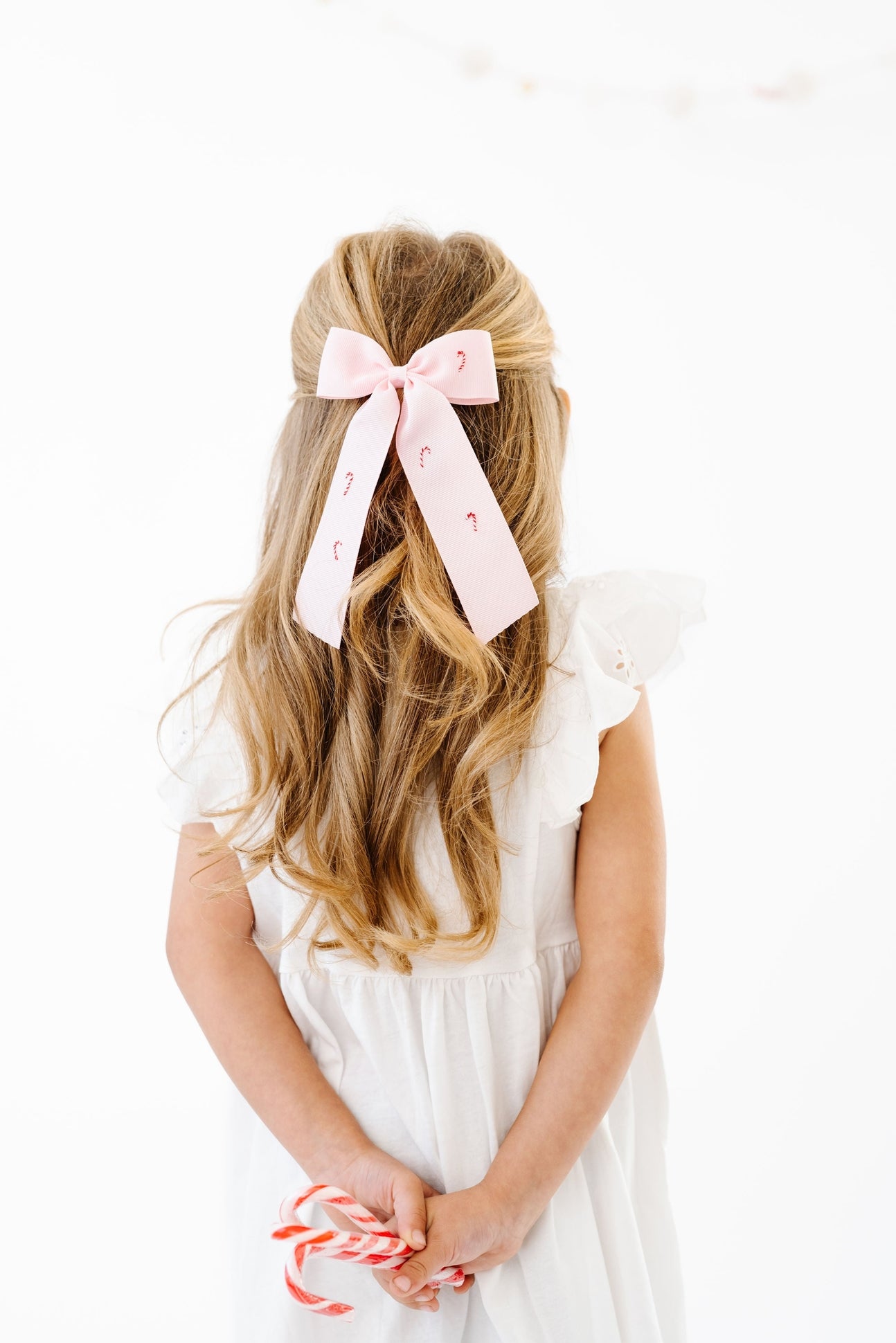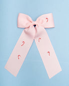 Candy Cane Village Hand-Embroidered Bow, Pale Pink