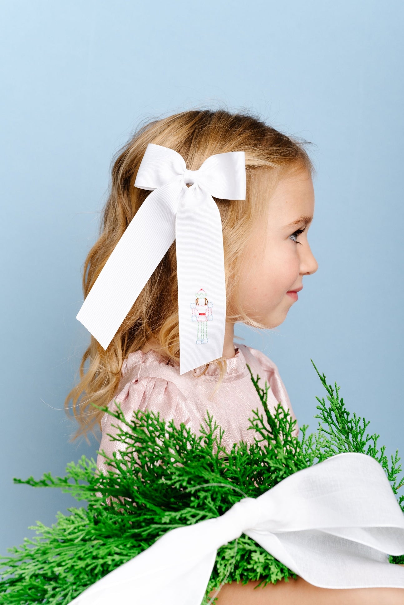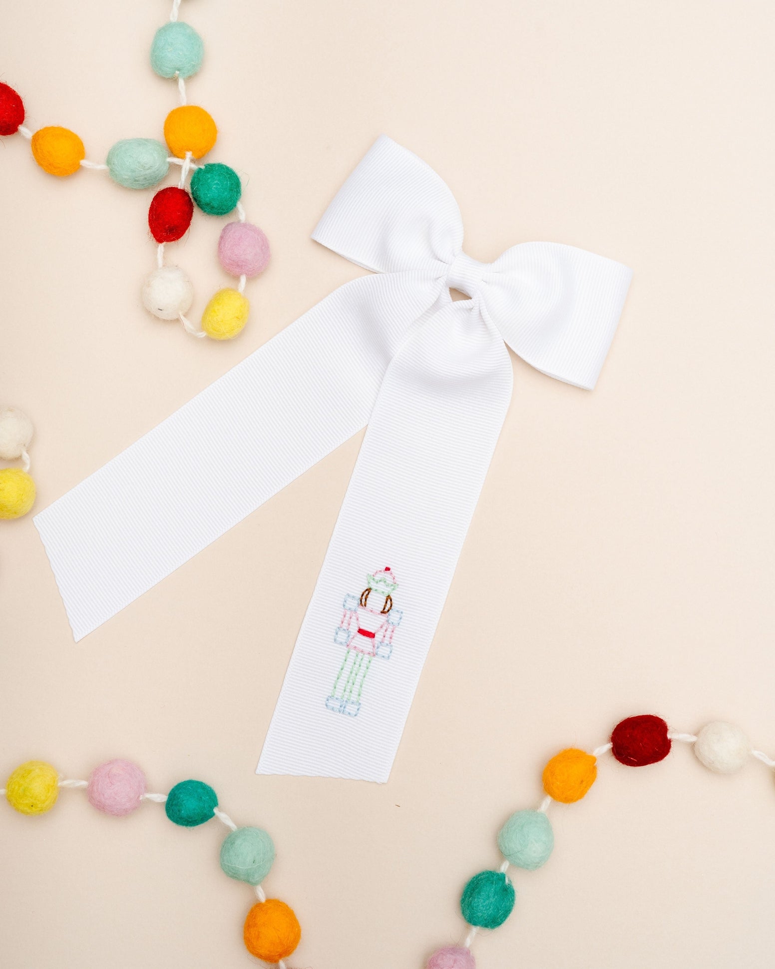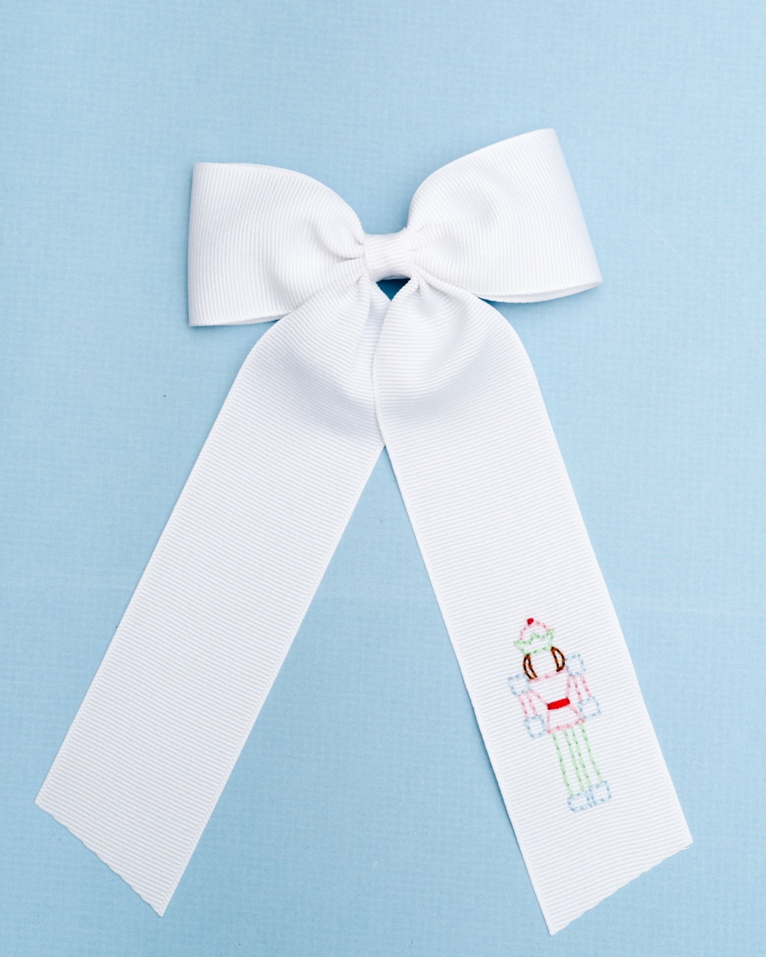 Nutcracker Hand-Embroidered Bow, White