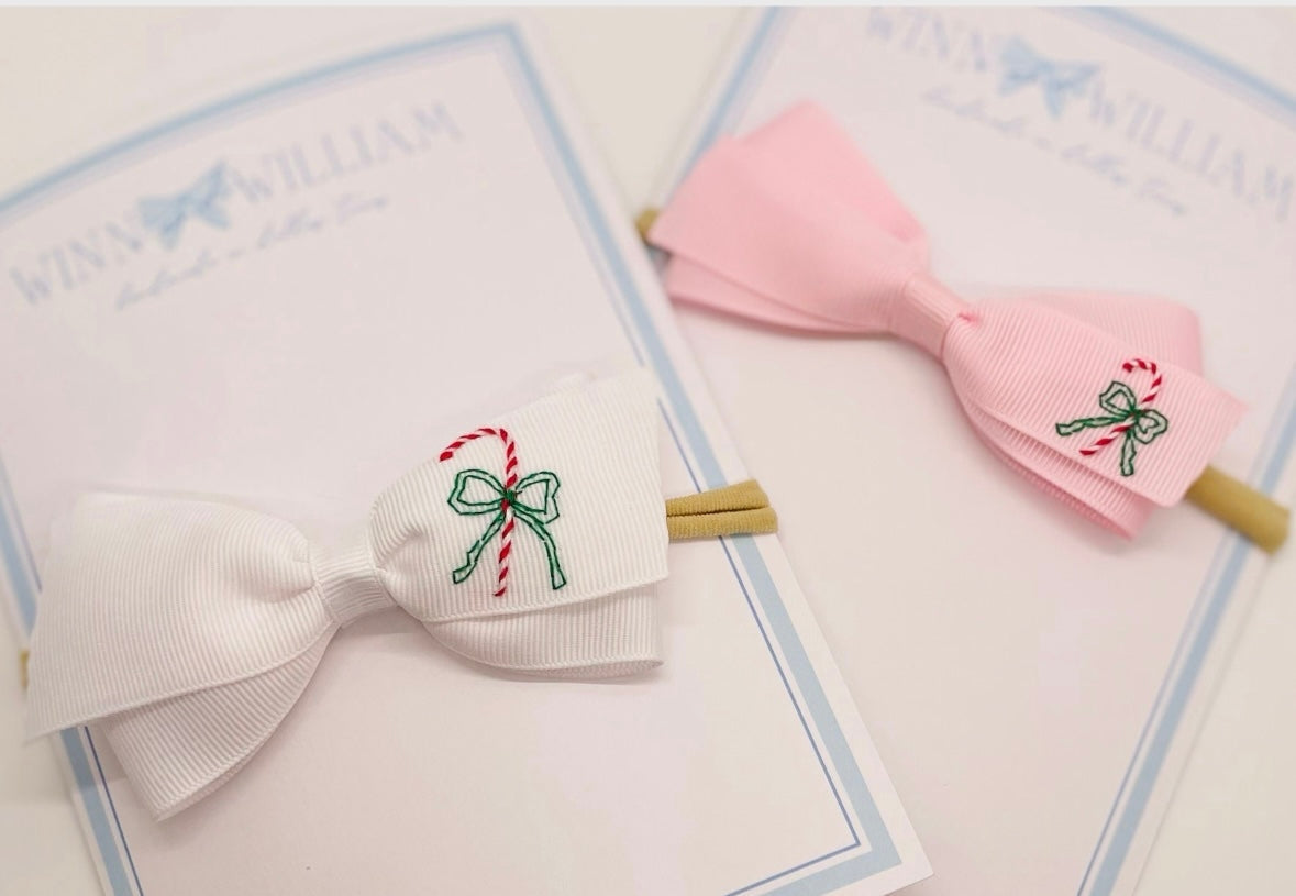 Hand-Embroidered Candy Cane Baby Headband, PInk