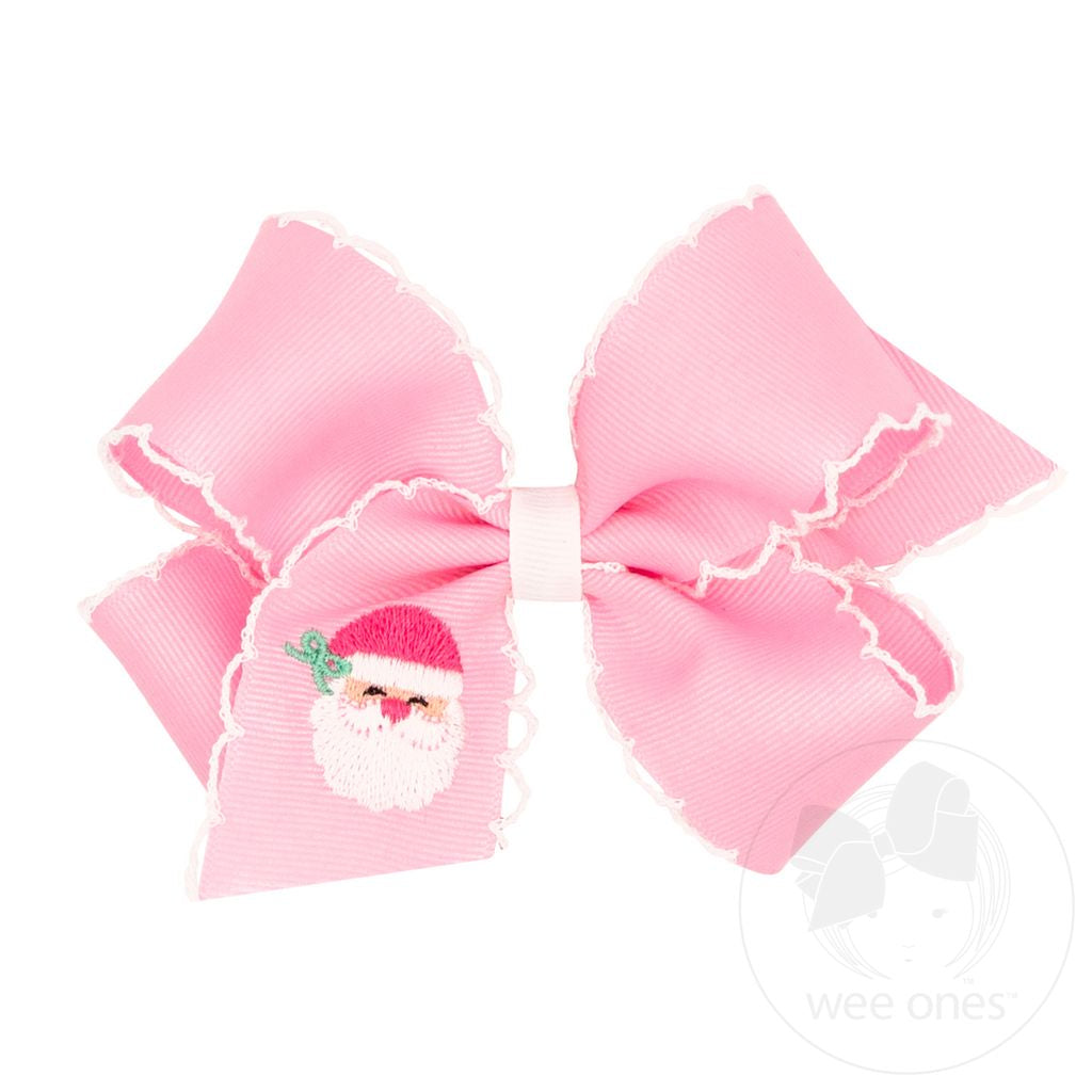 Grosgrain Moonstich Edge Hair Bow - Pink Santa