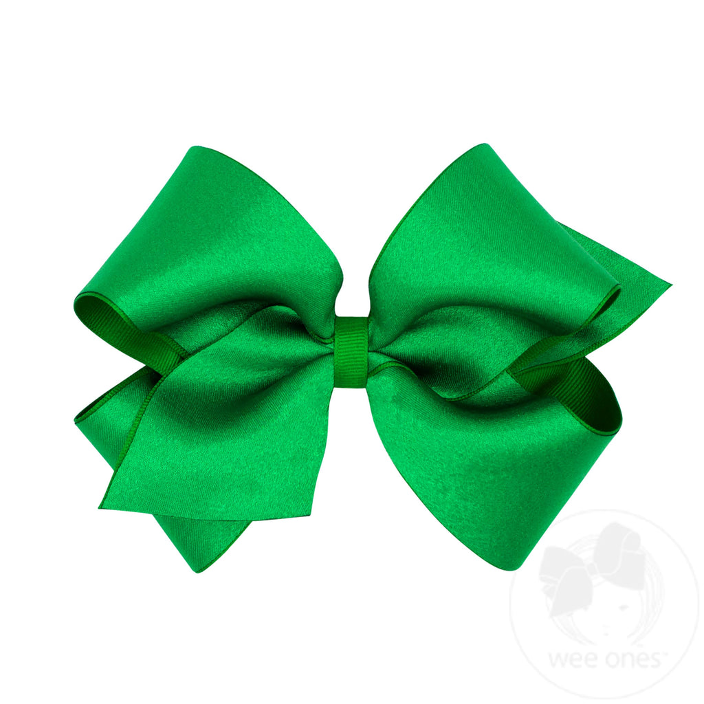 Crepe Satin with Grosgrain Underlay Hair Bow - Green