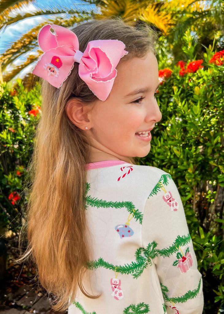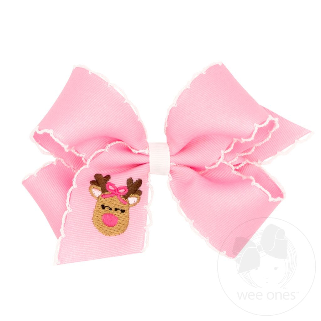 Grosgrain Moonstich Edge Hair Bow - Pink Reindeer