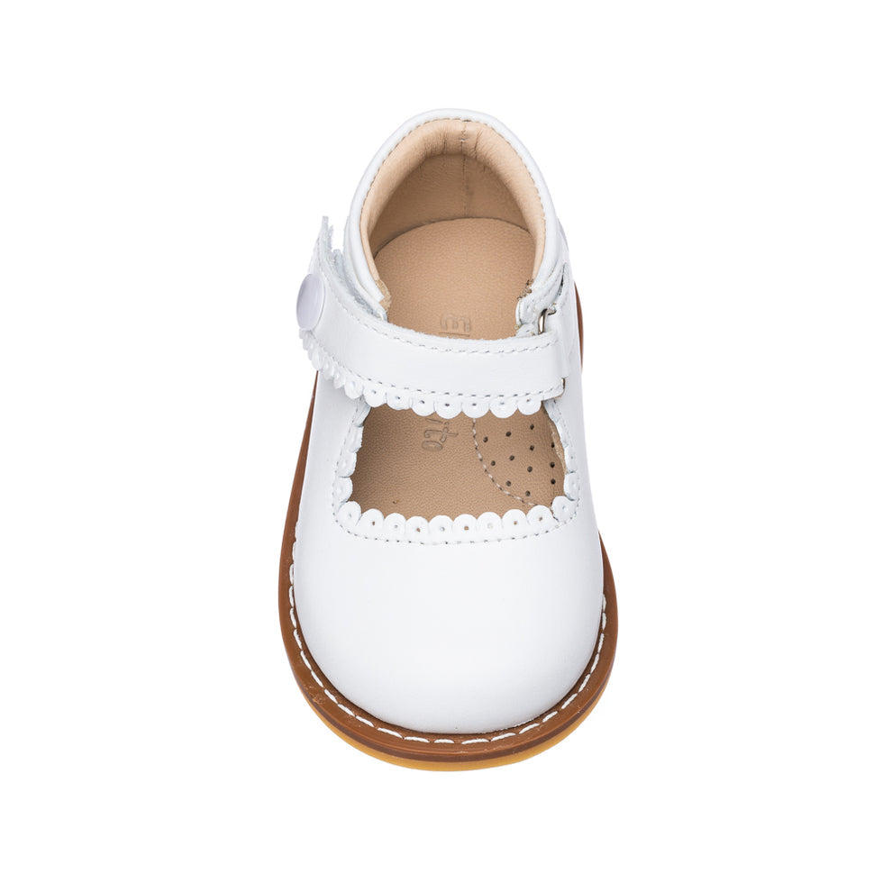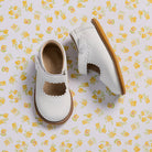 These stylish shoes are designed to support your child's growing feet with reinforced toes and ankle support. The scalloped edges add a touch of elegance, perfect for any occasion.