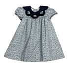 A timeless fall favorite for your little one. This sweet blue floral smocked girl's bishop dress with matching bloomers is crafted with delicate hand-smocking across the chest and soft puff sleeves finished with picot trim. The classic silhouette allows for easy movement while keeping your baby girl stylish and comfortable.