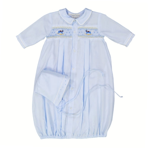 Rocking Horse Smocked Take Me Home Gown with Hat, Blue