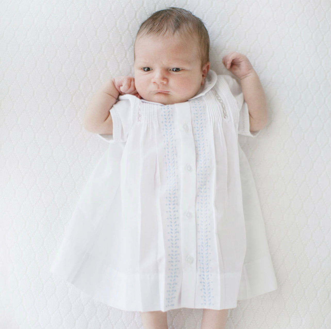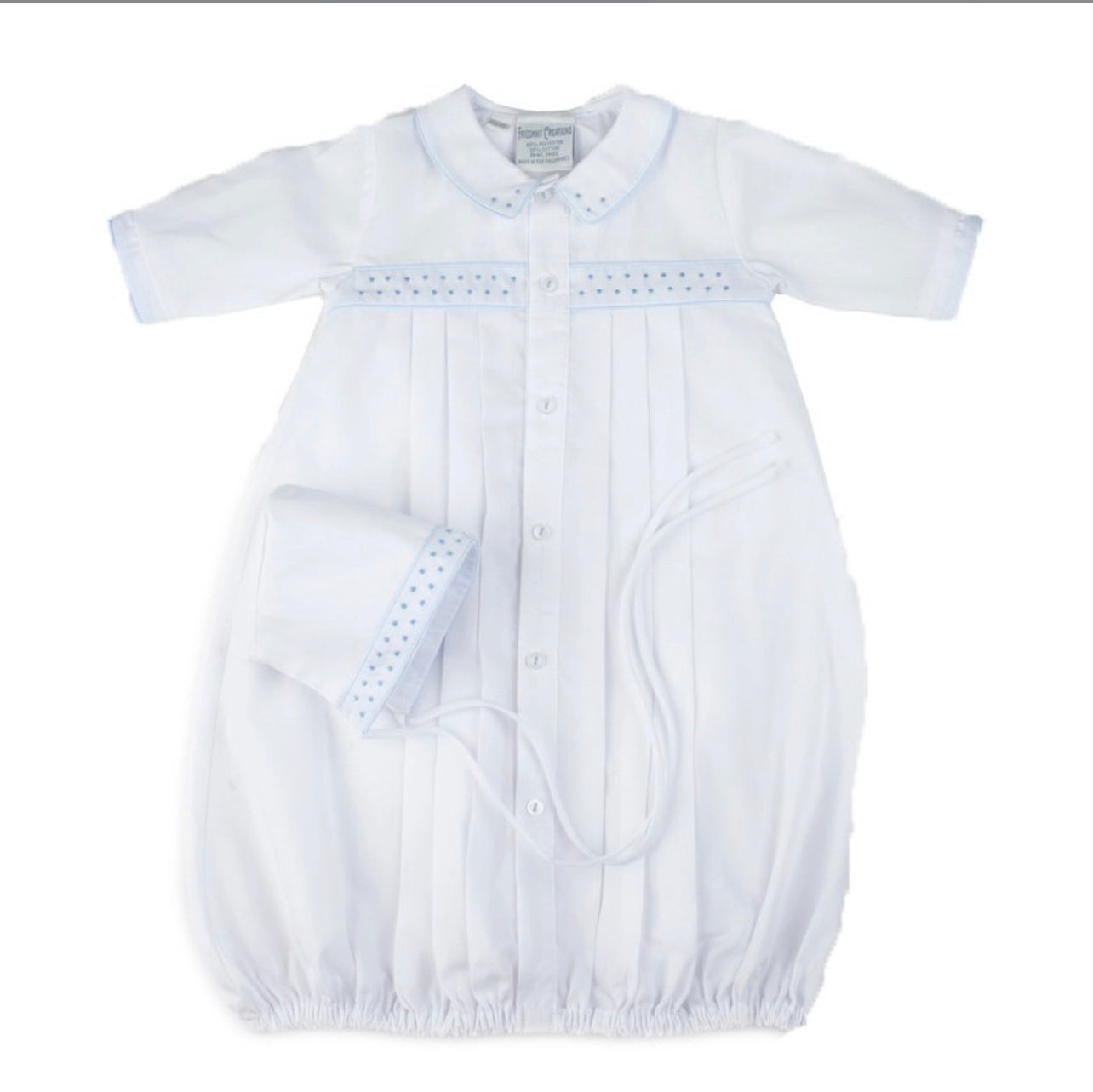 Dot Embroidered Take Me Home Gown with Hat, Blue