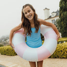 The FUNBOY Vintage Pink Stripe Inflatable Kids Pool Float is the perfect summer accessory for your little ones! This 34” swim ring features a charming pink stripe design, adding a fun and timeless touch to any pool day. Lightweight and easy to pack, it’s great for pool parties, beach outings, and vacations. Made from durable materials, this float ensures hours of effortless play and relaxation in the water. Suitable for ages 8+.