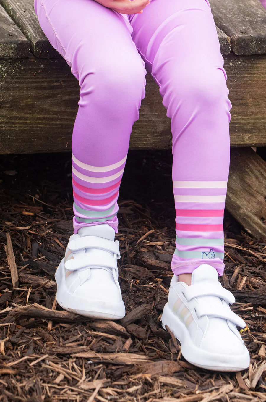 GIRLS ATHLETIC LEGGING IN ORCHID PURPLE WITH ANKLE STRIPES