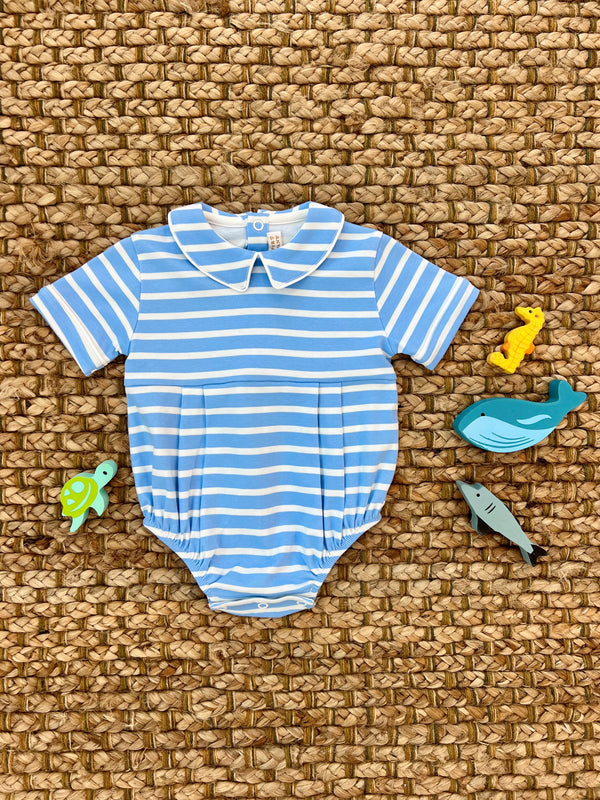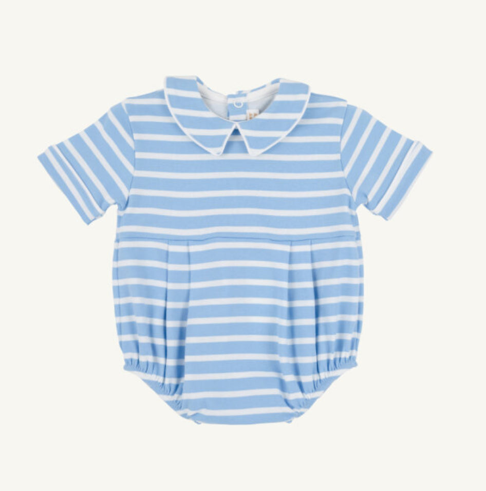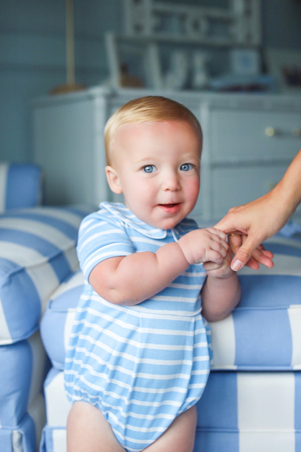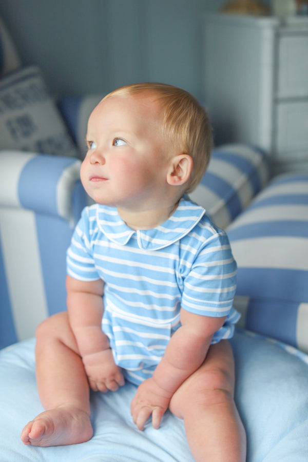 Short Sleeve Bradford Romper - Kennedy Cruise Stripe with Beale Street Blue