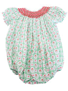 Sweetly smocked girl bubble with Santa. Perfect for the Holidays.
