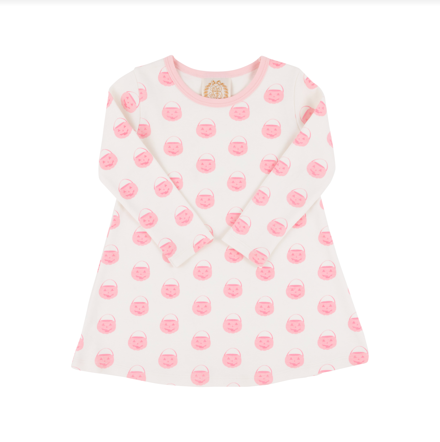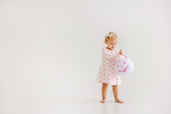 Long Sleeve Polly Play Dress - Vintage-Prep Pumpkin Pails (Sandpearl Pink) with Sandpearl Pink