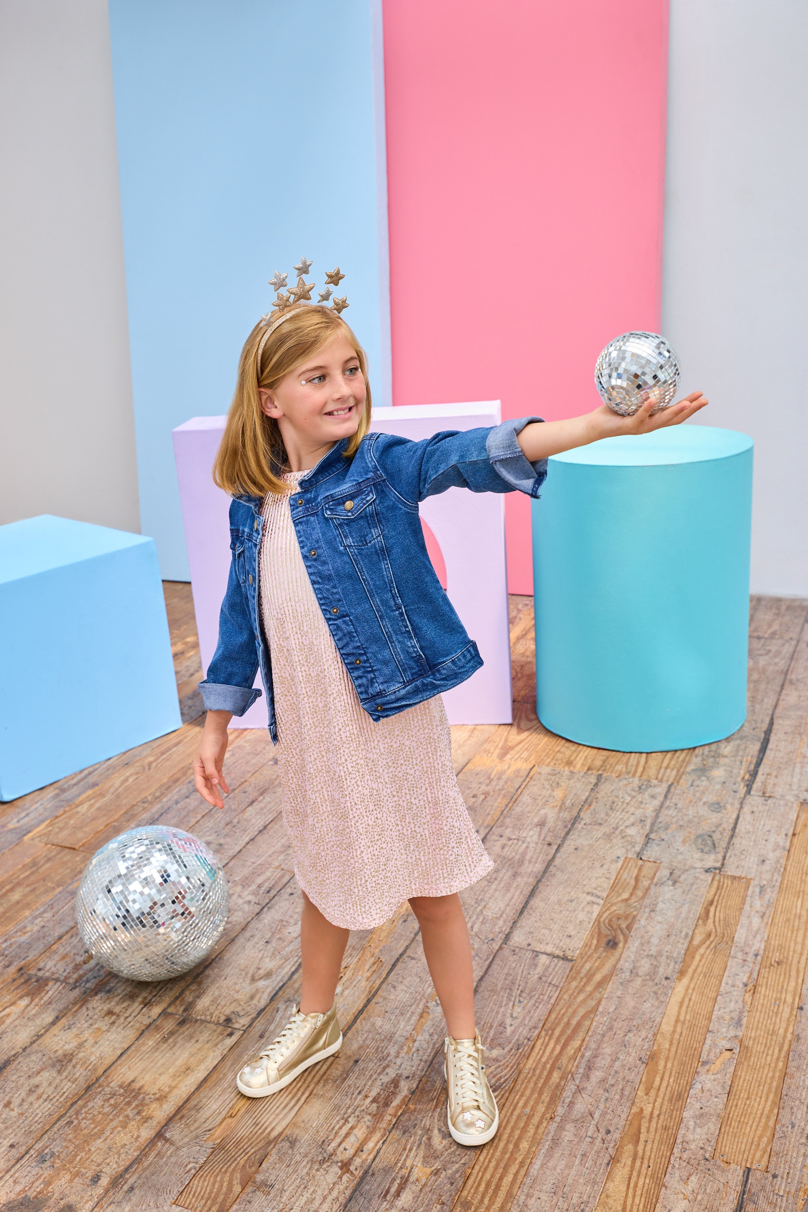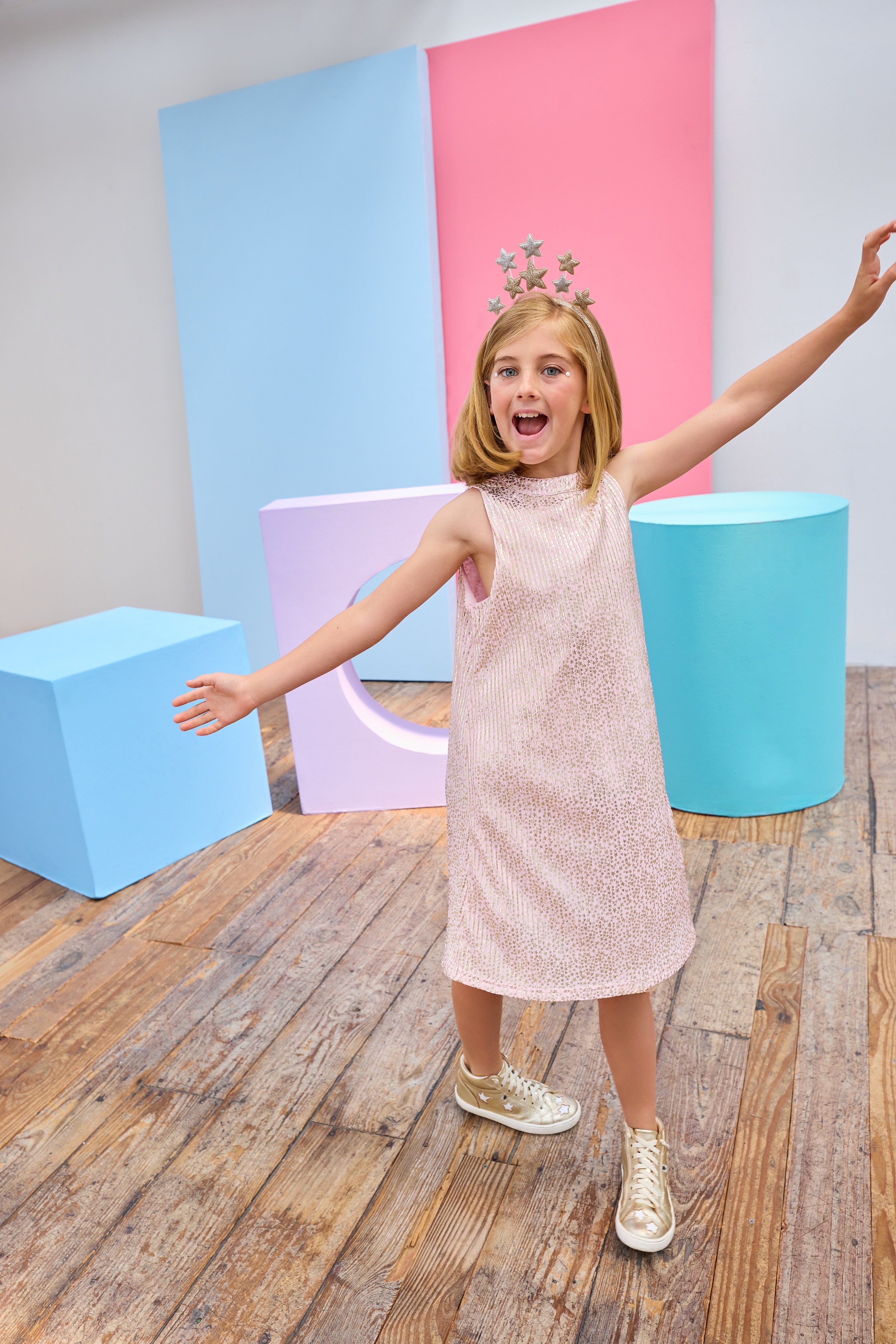 Swing Dress - Pink Crinkle Stars