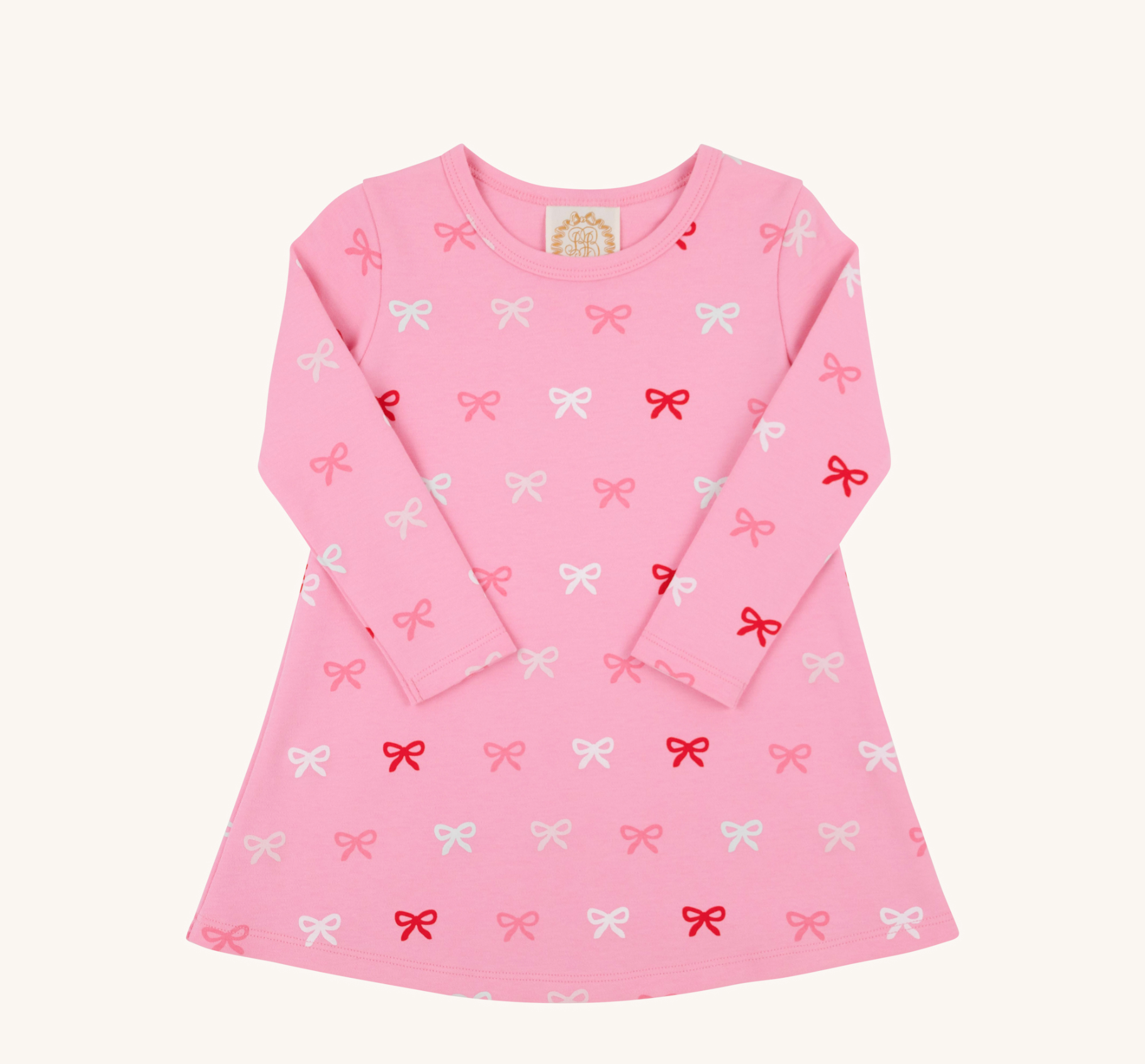 Long Sleeve Polly Play Dress - Bitty Bows with Hamptons Hot Pink