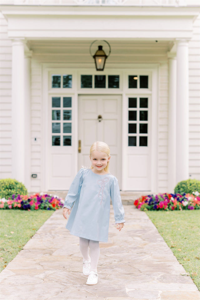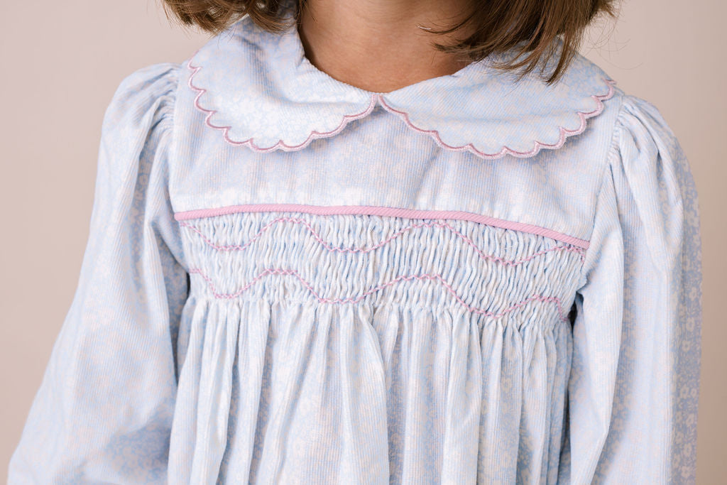 Long Sleeve Maerin Fitz Frock (Flannel) - Barrington Blue & Hamptons Hot Pink Gingham
