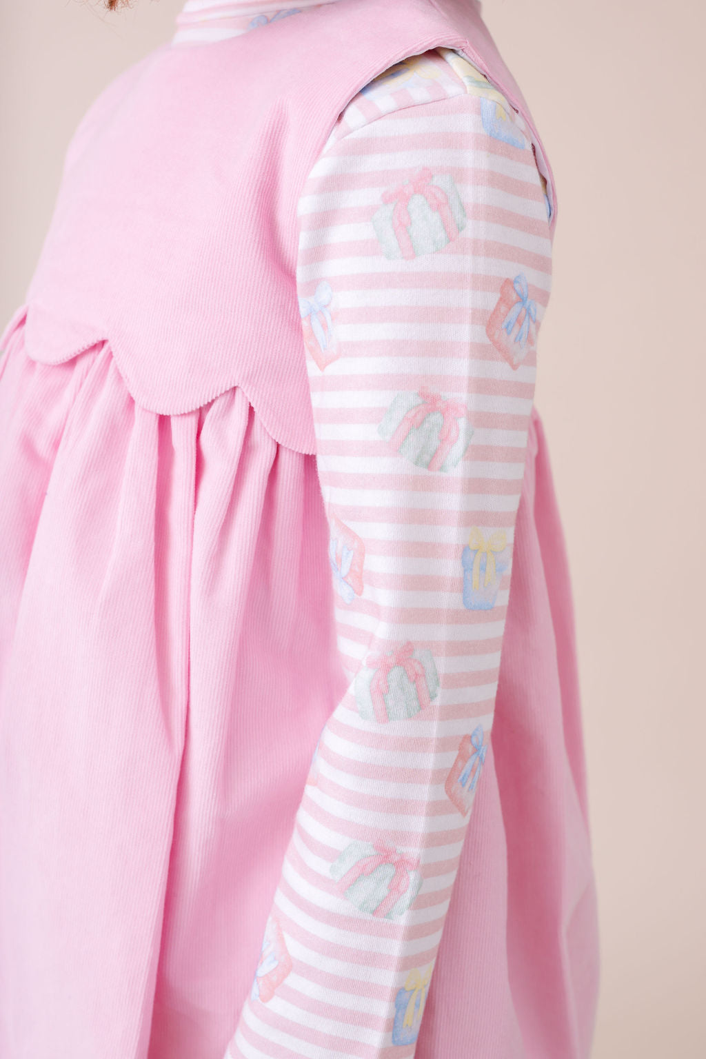 Long Sleeve Ruehling Ruffle Dress (Quilted) - Richmond Red with Palm Beach Pink