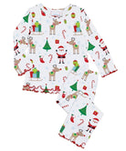 Girls Ruffle Top & Pant Pajama Set, White Christmas