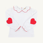 Emma's Elbow Patch Top - Worth Avenue White with Richmond Red Hearts