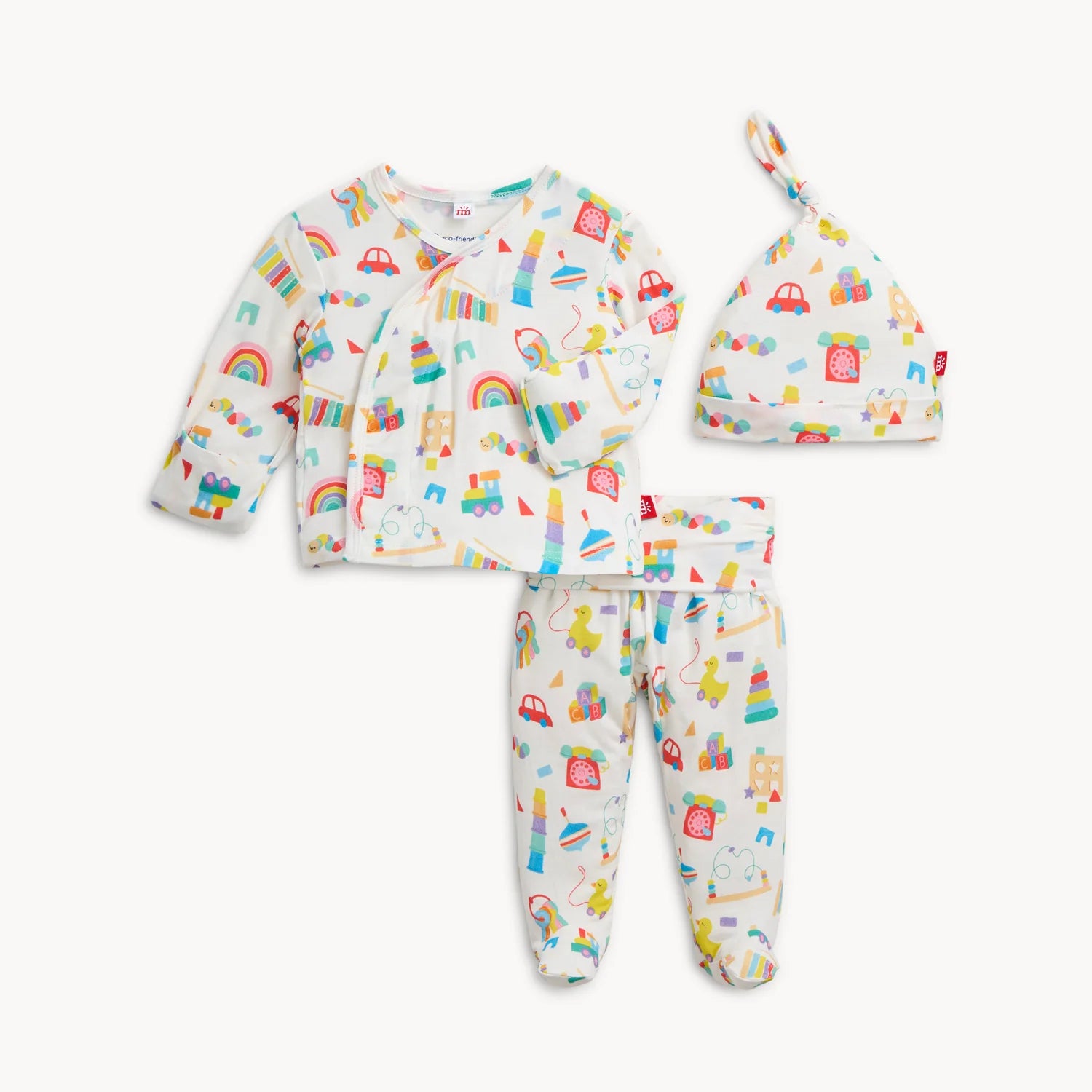 Wrap your new bundle of joy in the modal Take Me Home Set. The kimono wrap-style top fastens with magnets for quick, foolproof changes, while a roomy fit is gentle on healing belly buttons. Comfy pants have leg cuffs that convert to footies for added warmth. Sustainable modal feels silky against baby’s skin (and yours), so it’s perfect for snuggling during those early weeks.