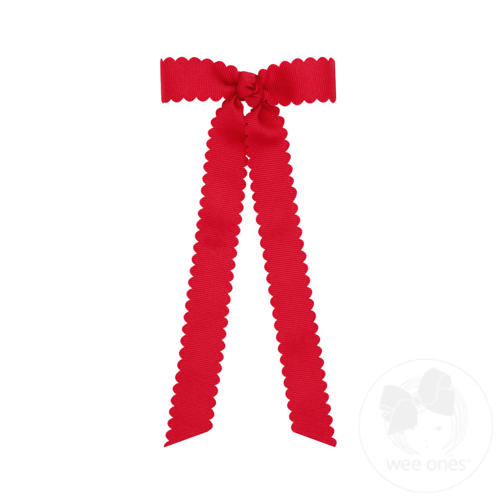 Mini Scalloped Edge Grosgrain Bow with Streamer Tails - Red