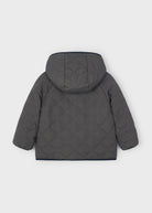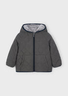 Long sleeved Puffer jacket for boys. Hooded collar. Front, central zip fastening. Padded design/Quilted design. The item has a unisex design which offers great versatility through its neutral color tones and shape. This is a reversible item.
