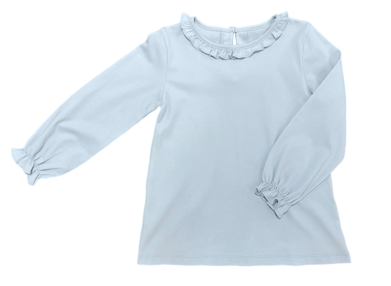 Pima Ruffle Neck Top, Light Blue