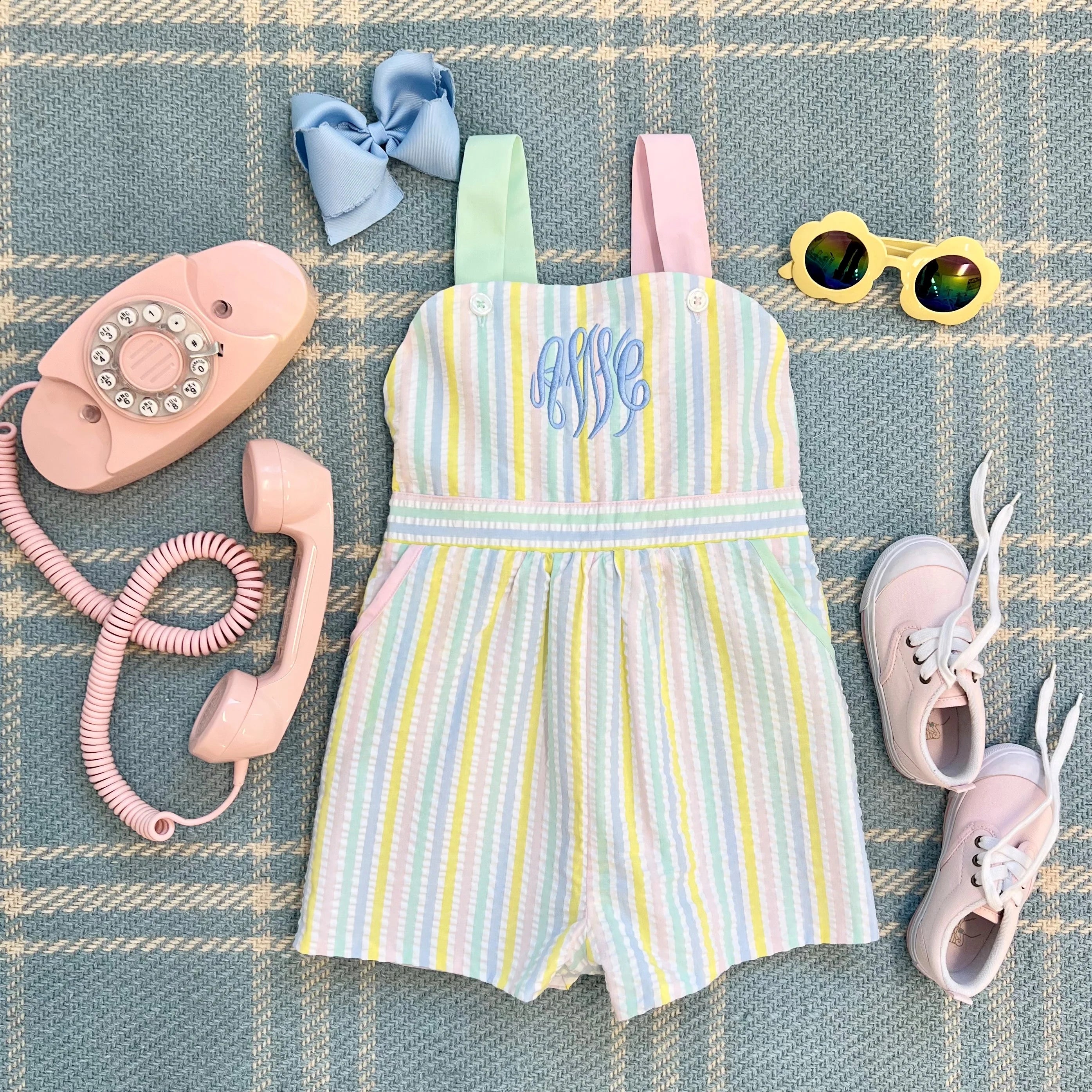 Ruthie Romper - Siesta Key Seersucker with Palm Beach Pink and Sea Island Seafoam