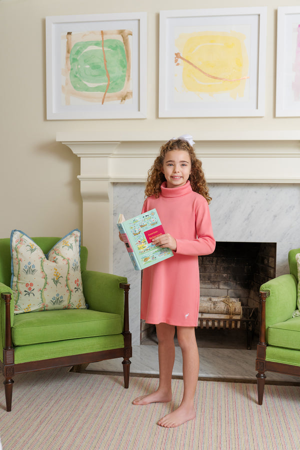 Tatum's Turtleneck Dress - Parrot Cay Coral with Worth Avenue White